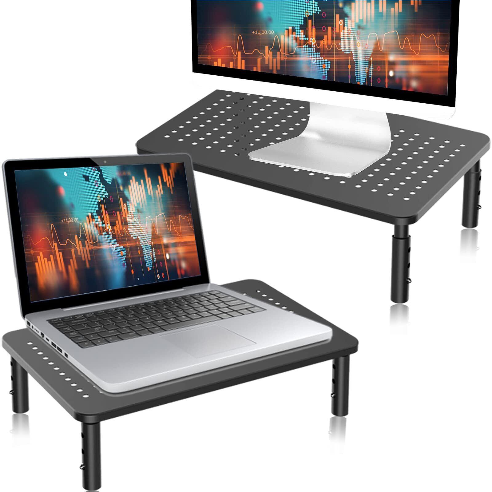 モニター台 机上台 高さ調整可能 滑り止めマット付き pcスタンド 耐荷重20㎏ 2pack (MST003-2)