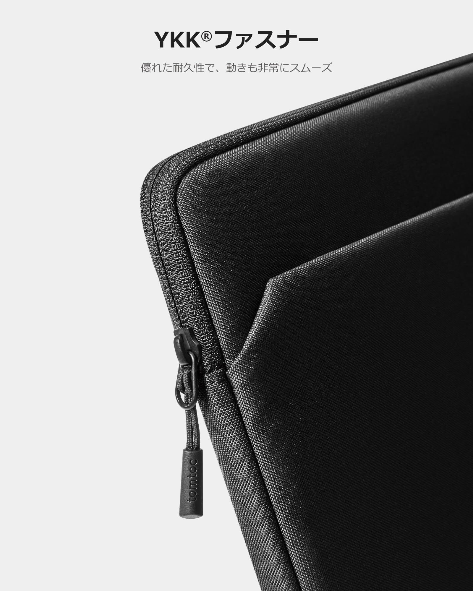 【品質へのこだわり】YKKファスナーを採用し、耐久性が優れて、開閉がよりスムーズで。表地はプラスチックからリサイクルしたエコ素材を採用、頑丈で耐用性に優れ、汚染を減らし環境に優しいです。tomtoc製品は全て12ヶ月間安心付きます。