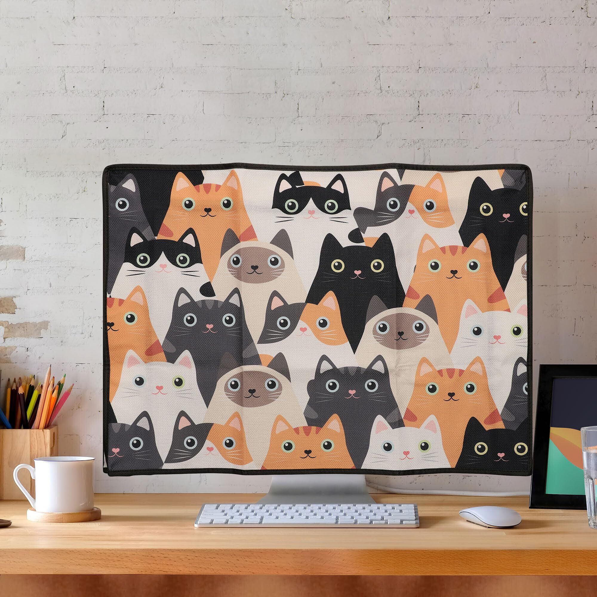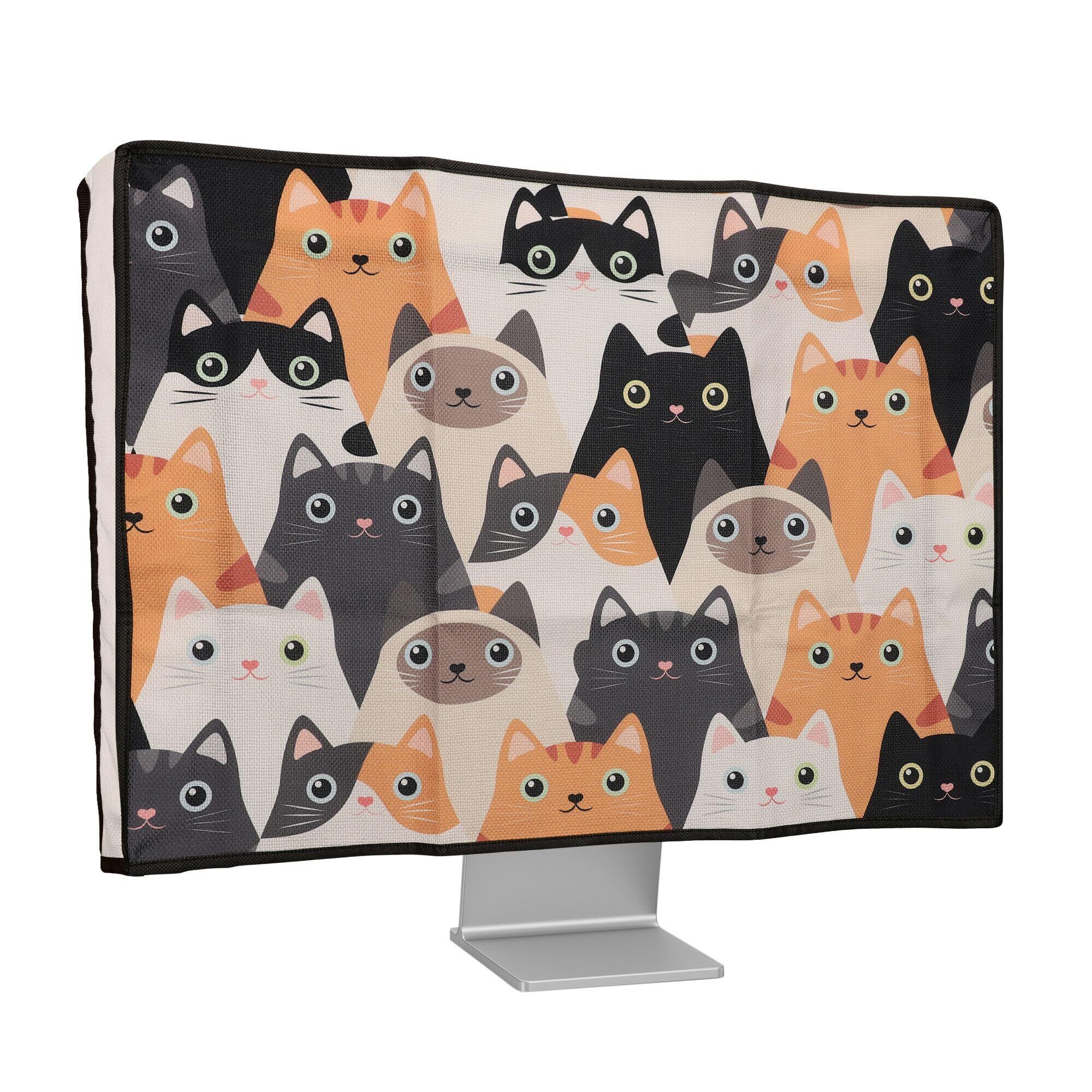 kwmobile 24-26"モニター対応 モニターカバー - PC 画面 パソコン ホコリ 防止 - 防塵 リネン 猫の行進デザイン