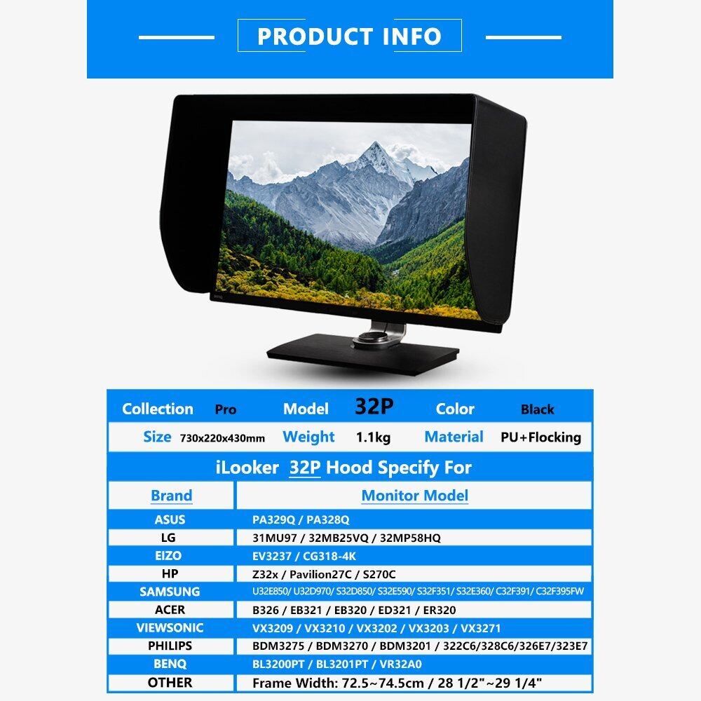 32P 31~32インチ遮光フード LCD LEDビデオモニター日除けフードサンシェード for Dell HP Viewsonic Philips Samsung LG Eizo NEC ASUS ACER BENQ AOC Lenovo, Fitsモニタフレーム幅725~745mm
