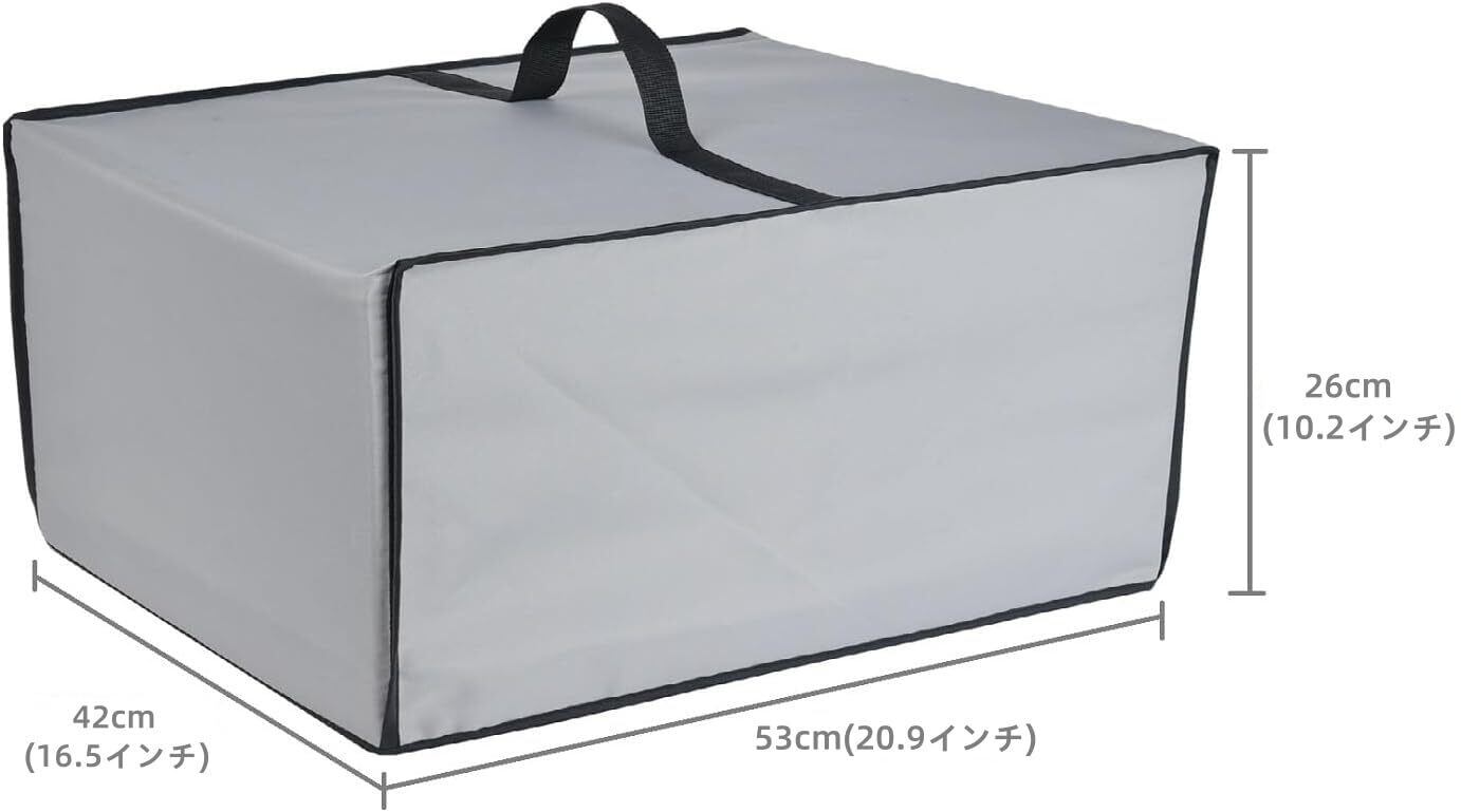 サイズは53cm x 42cm x 26cmで、大きさにも余裕があります。軽量かつ取り扱いが簡単なので、カバーをかぶせるだけで使用開始できます。使用しない時は折りたたんでコンパクトに収納可能です。