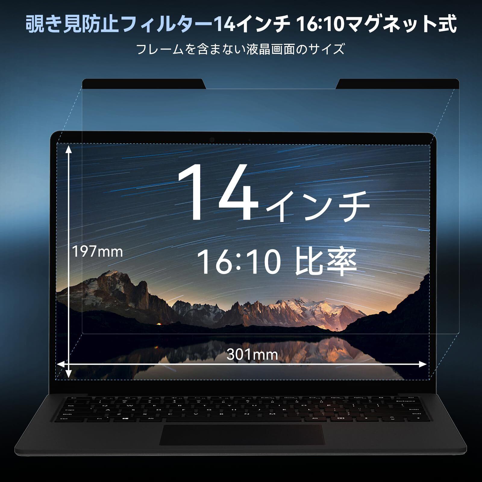 Mamol 覗き見防止フィルター 14インチ 16:10 マグネット式 パソコン用 プライバシーフィルター ブルーライトカット 反射防止 覗き見防止フィルム 両面使用 液晶保護フィルム 着脱簡単