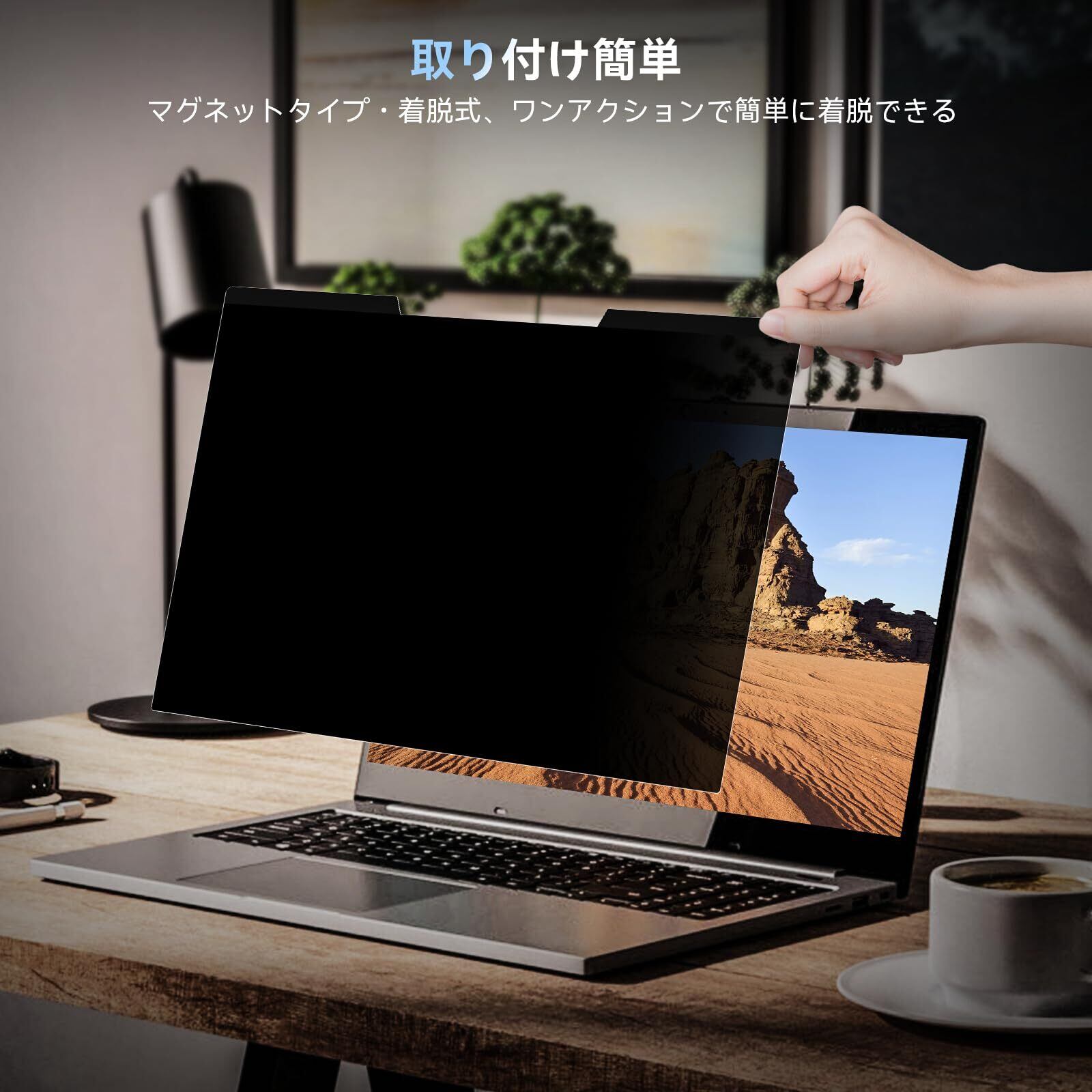 このフィルターはマグネット式で、取り付けや取り外しが簡単です。面倒なテープや粘着剤を使わず、必要な時にすぐに装着できる利便性が特長です。しっかりと画面にフィットし、安定した使用感を実現しています。