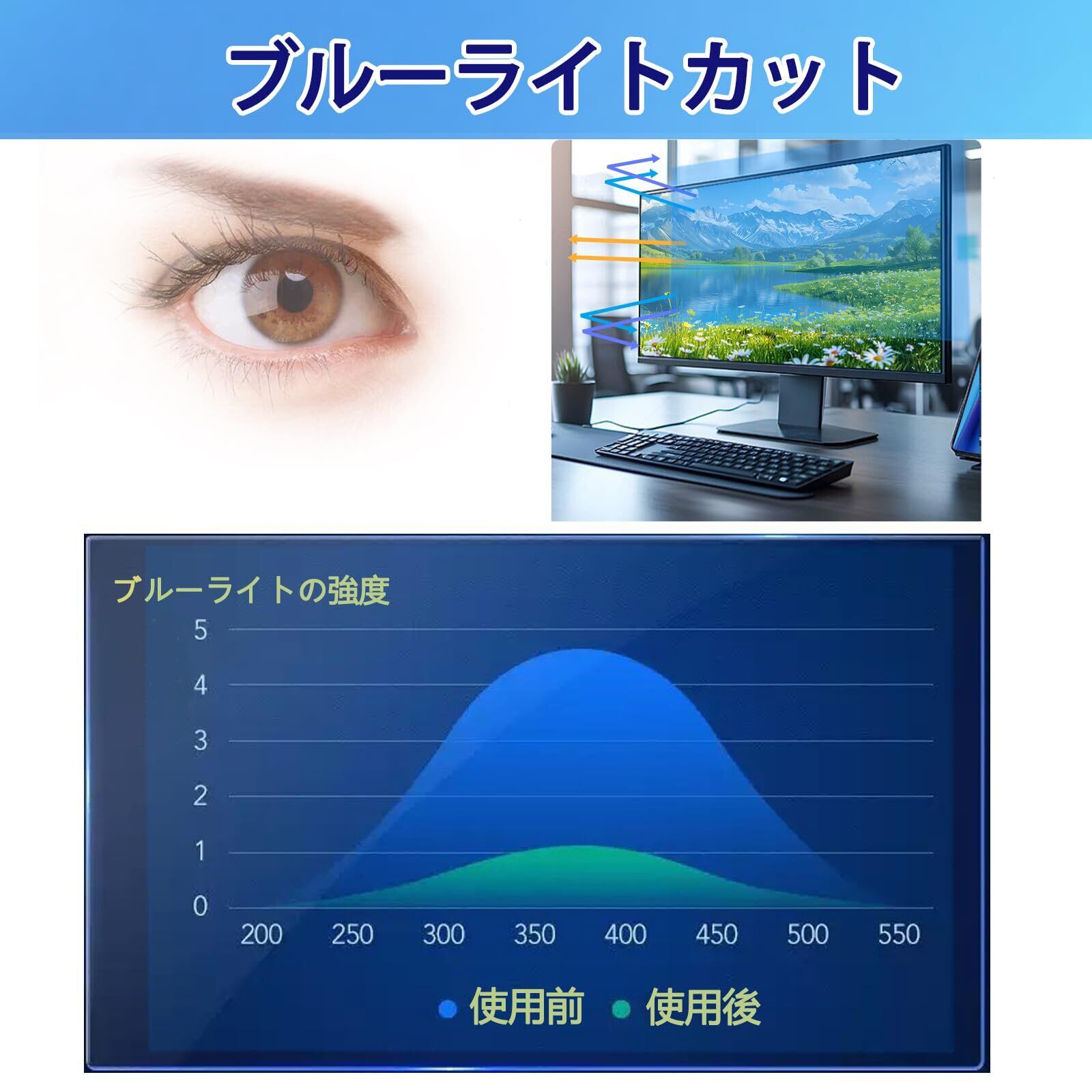 【アンチグレア& 反射防止】ブルーライトカットフィルムが有害な眩しさを防止します。ライトの反射や映り込みを減らし、画面が見やすくなり、パソコン作業者の目の健康を守ります。【画面保護】ブルーライトカットフィルムの硬度は3Hの硬度なので、傷から画面を守ることができます。