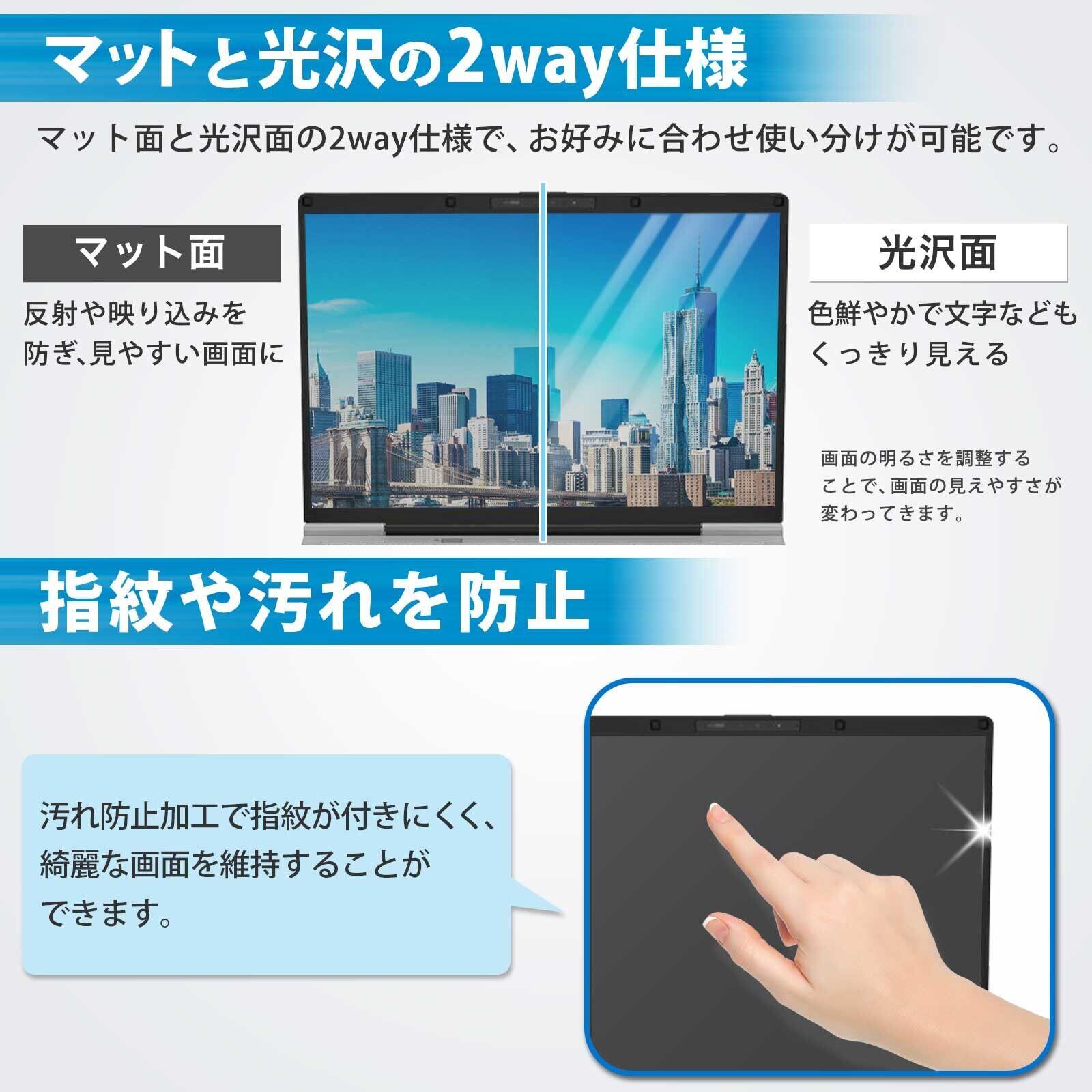 ■両面使用可能 : 光沢有り/無し -表面はAG(アンチグレア)コーティングを施しているので反射やギラつきを抑えます。もう片面はクリアに視認出来る光沢クリアコーティングを施しており、好みの面を選んで使用できます。