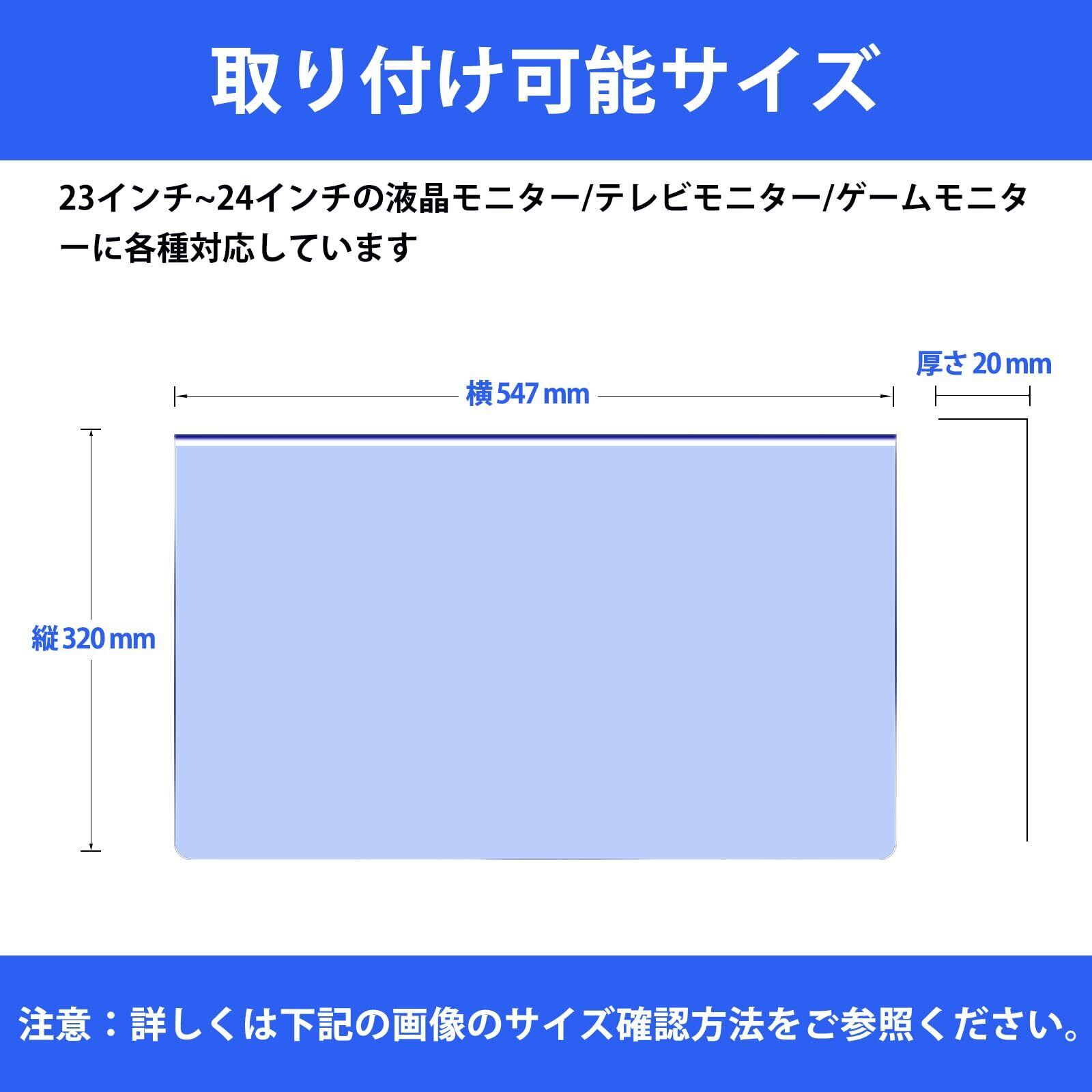 【対応機種】 23インチ/23.6インチ/23.8インチ/24インチ 液晶モニター テレビモニター ゲームモニターに各種対応しています。 [フィルターサイズ] 横 547 mm × 縦 320 mm × 厚さ20mmです。※ご注意:ご注文の前に、お使いのモニター(可視領域)の長さ、幅、奥行きを測定してください。23インチ以下のものでも、はみ出し部分が気にならなければご利用が可能です。