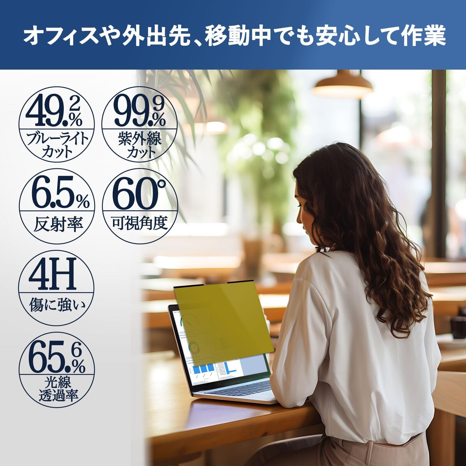 特別な技術により、正面からはクリアな視界を保ちながら、左右からの視線を効果的にシャットアウトします。公共の場やオフィスでも周囲の目を気にせず、安心して作業に集中できます!