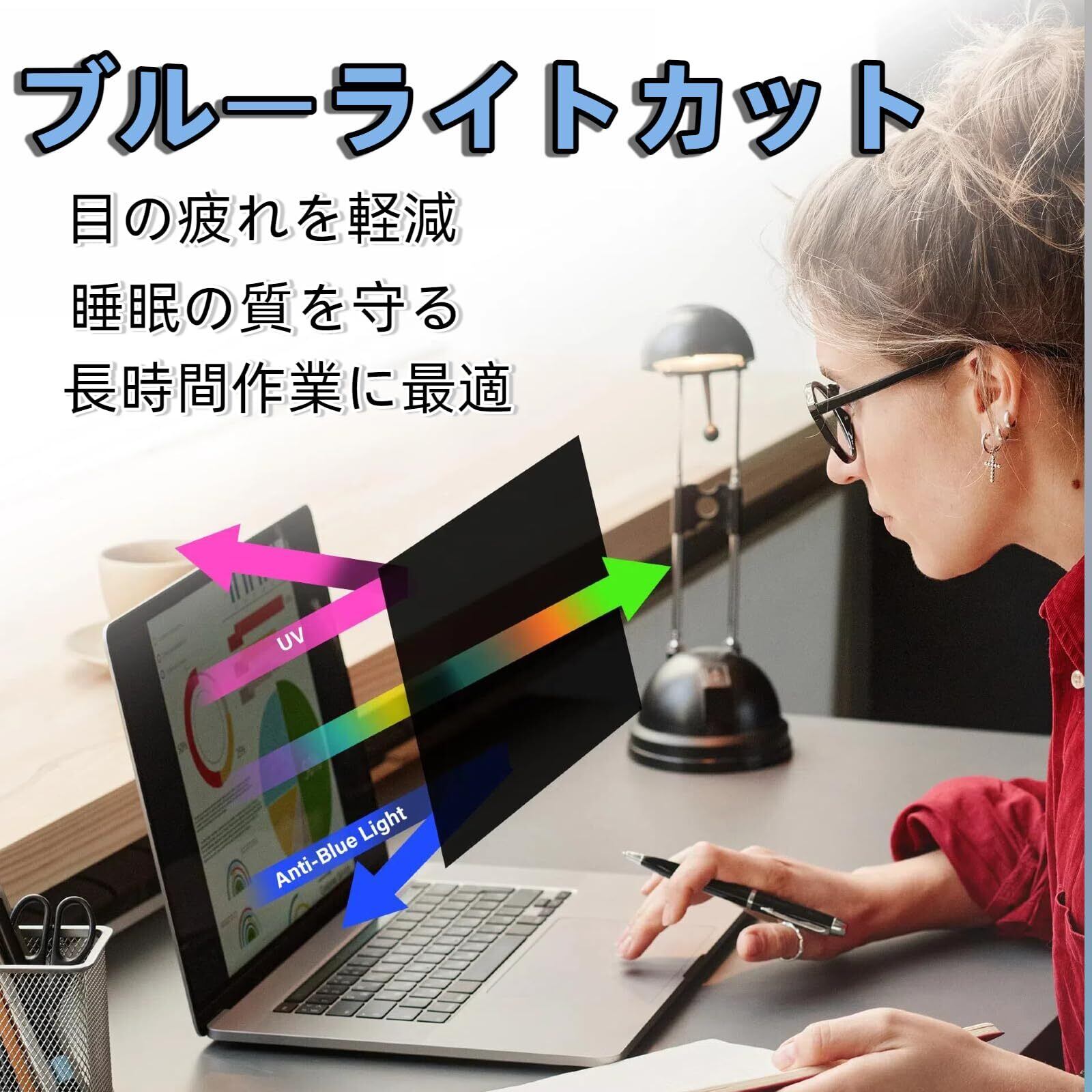 【ブルーライトカット&UVカット】目に有害なブルーライトを約49%カットし、紫外線も99.9%遮断。長時間の作業による目の疲れを軽減します。眼精疲労・視力低下の予防に役立つため、テレワークや在宅勤務にもおすすめのブルーライトカット付き覗き見防止フィルターです。