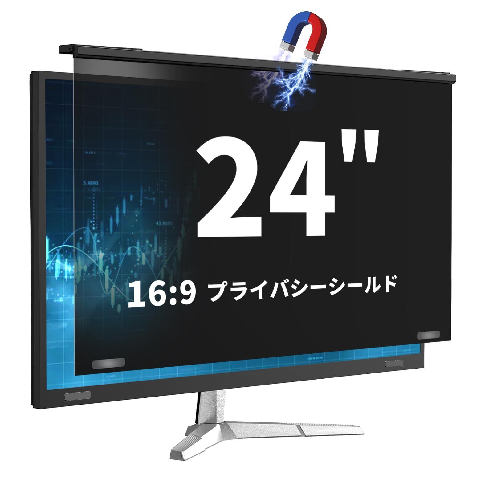 24インチのぞき見防止フィルム 磁気吸着覗き見防止フィルタープライバシー保護フィルム PCモニター用 (16:9) ブルーライト/UVカット ノングレア フック式対応