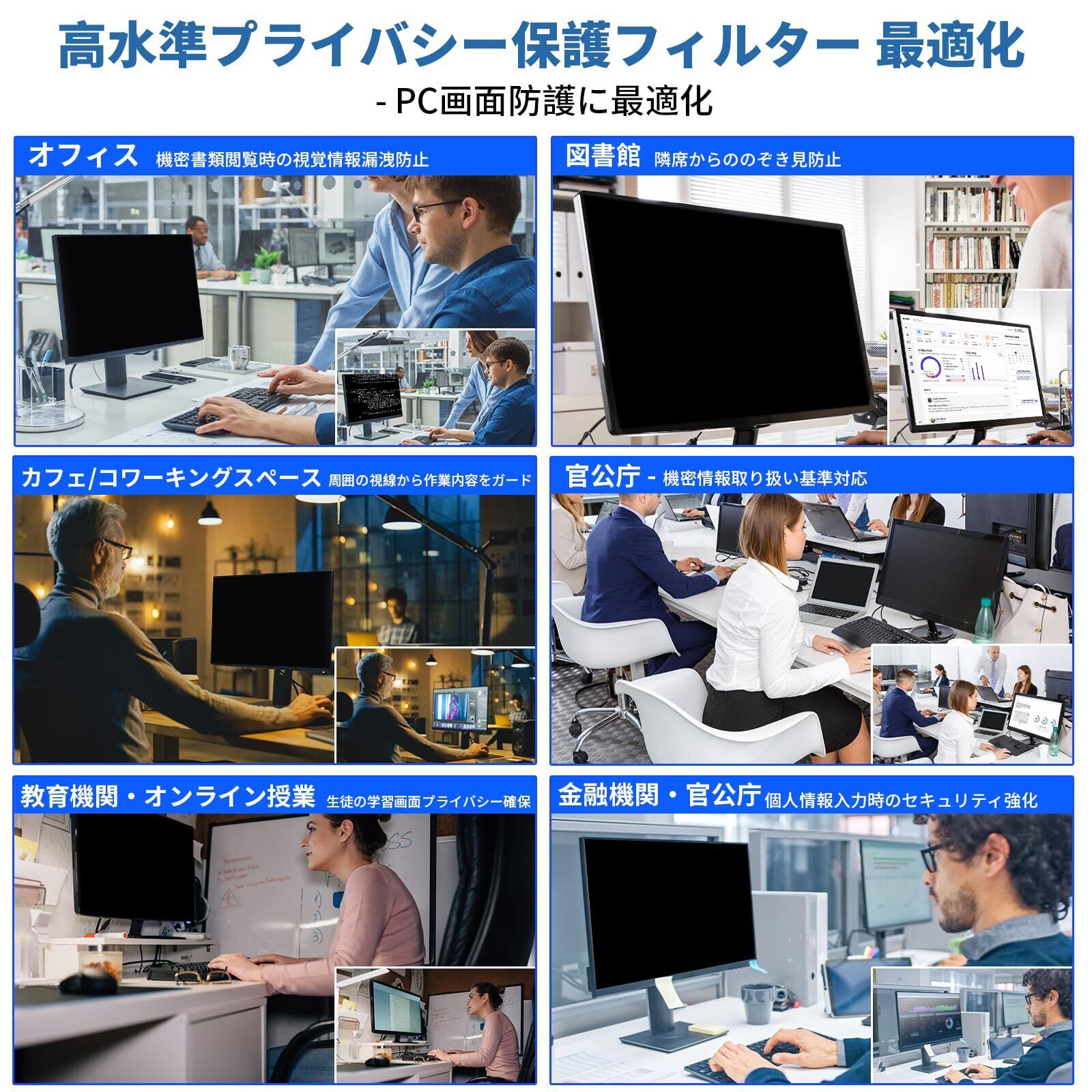 24インチ 高性能プライバシーフィルター - 16:9比率の24型モニター対応(幅 約547mm × 高さ 約331mm|対角 609.6mm)。NEC・EIZO・シャープ・富士通・Panasonic製モニターにも完全互換(※HP・Dell・Lenovo・LG・ASUS・Acer・BenQ・iiyama等主要メーカー全対応)。オフィスや在宅ワークでの「のぞき見防止」に最適な企業向け防窥フィルム。ご注文前には必ずお使いのディスプレイ幅・高さを計測ください。