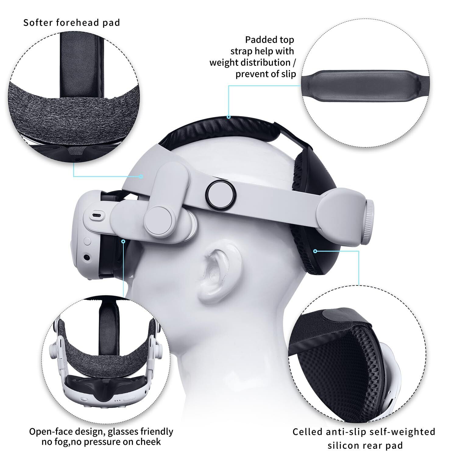 [快適第一] コンフォートファーストのアイデアの下でデザインと洗練。 グリップ力のある素材と十分なサポートにより、ヘッドの周りにできるだけ均等に重量が分散されます。 他のブランドのハローストラップに比べて額の圧力が小さく、頭の上で安定しています。