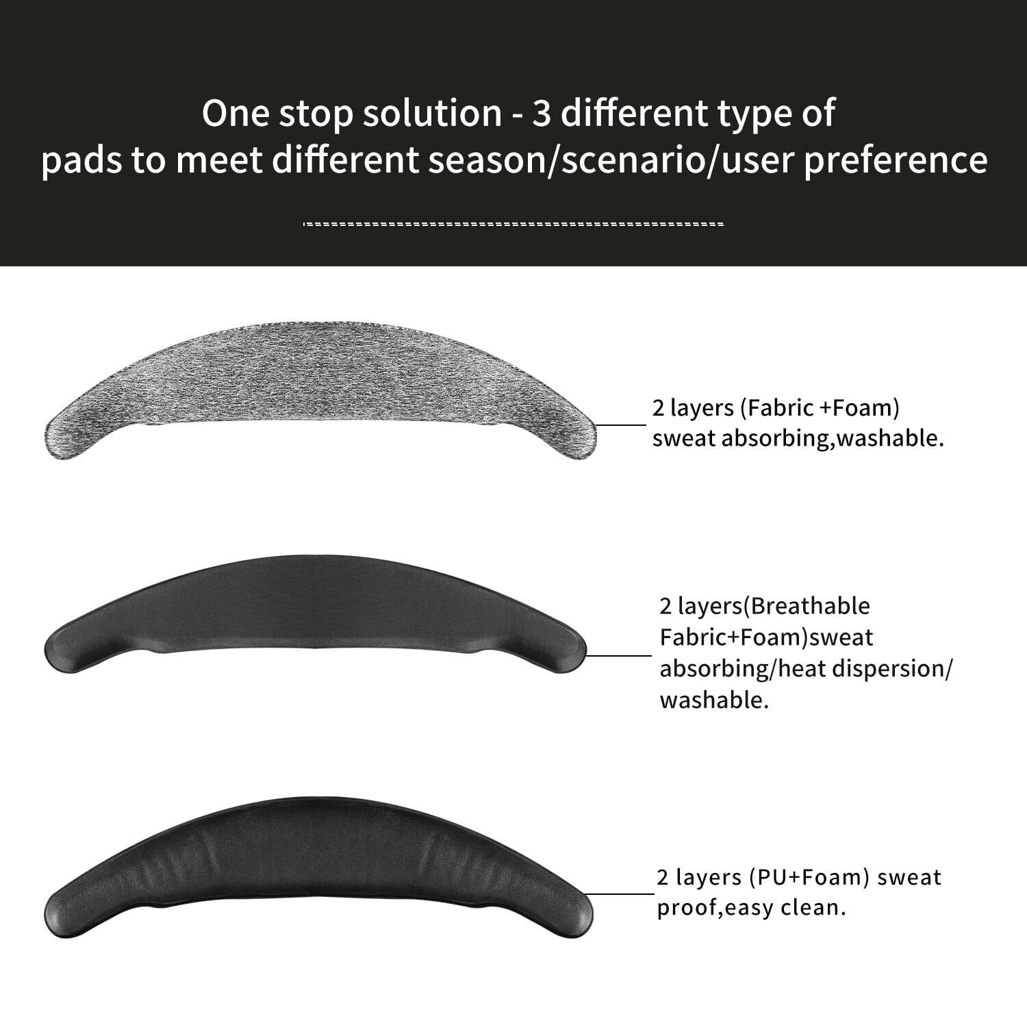 [ワンストップソリューション] パッケージには3つの異なる額パッドが含まれています。 2つは汗を吸収して洗濯可能。もう1つは防汗性で、さまざまな季節/シナリオ/ユーザーの好みにフィットします。 さらに、3つの異なる素材のリアパッドと2つの異なるトップストラップもあります。お好みに合わせて最適なフィット感を提供します。