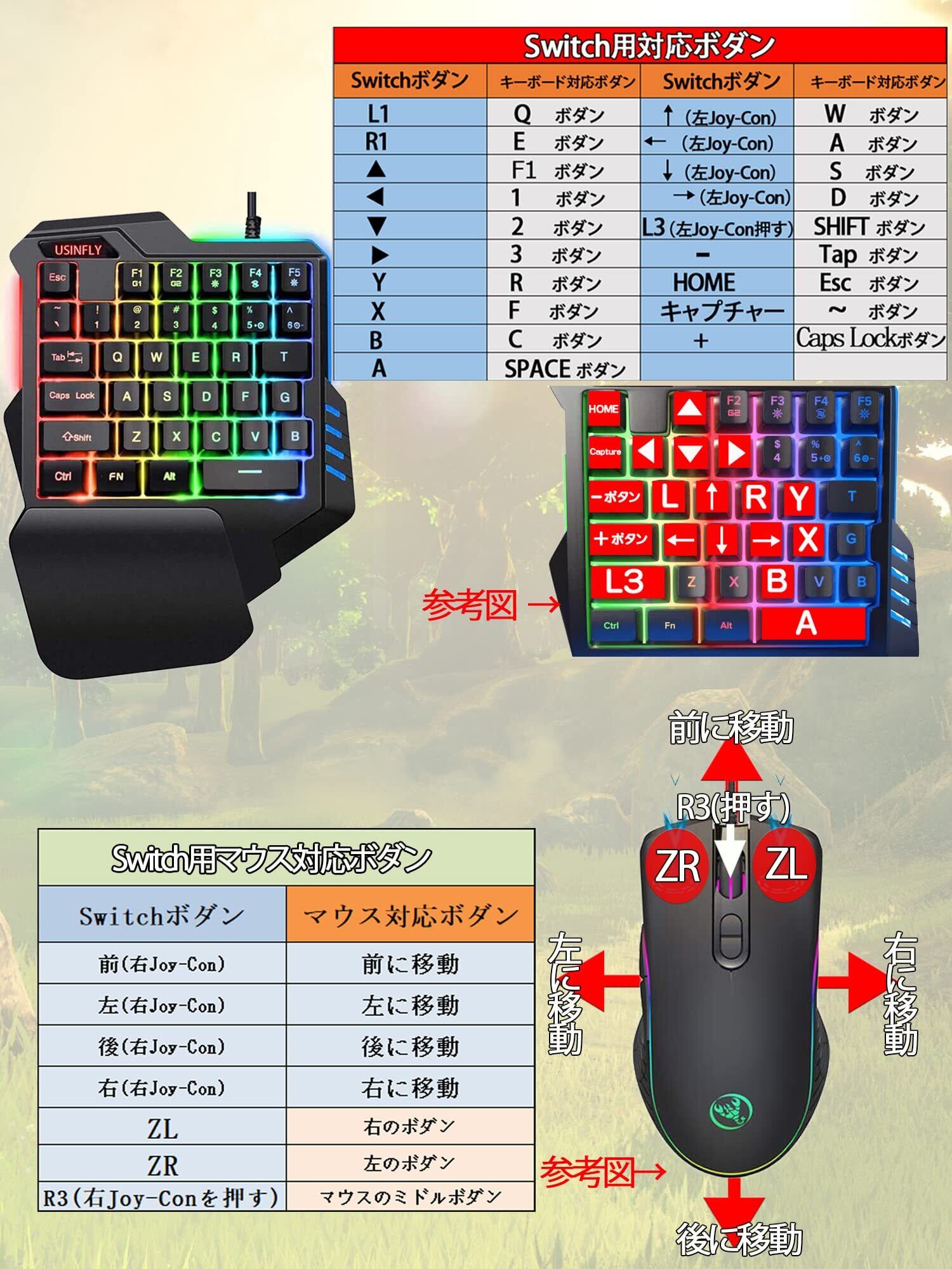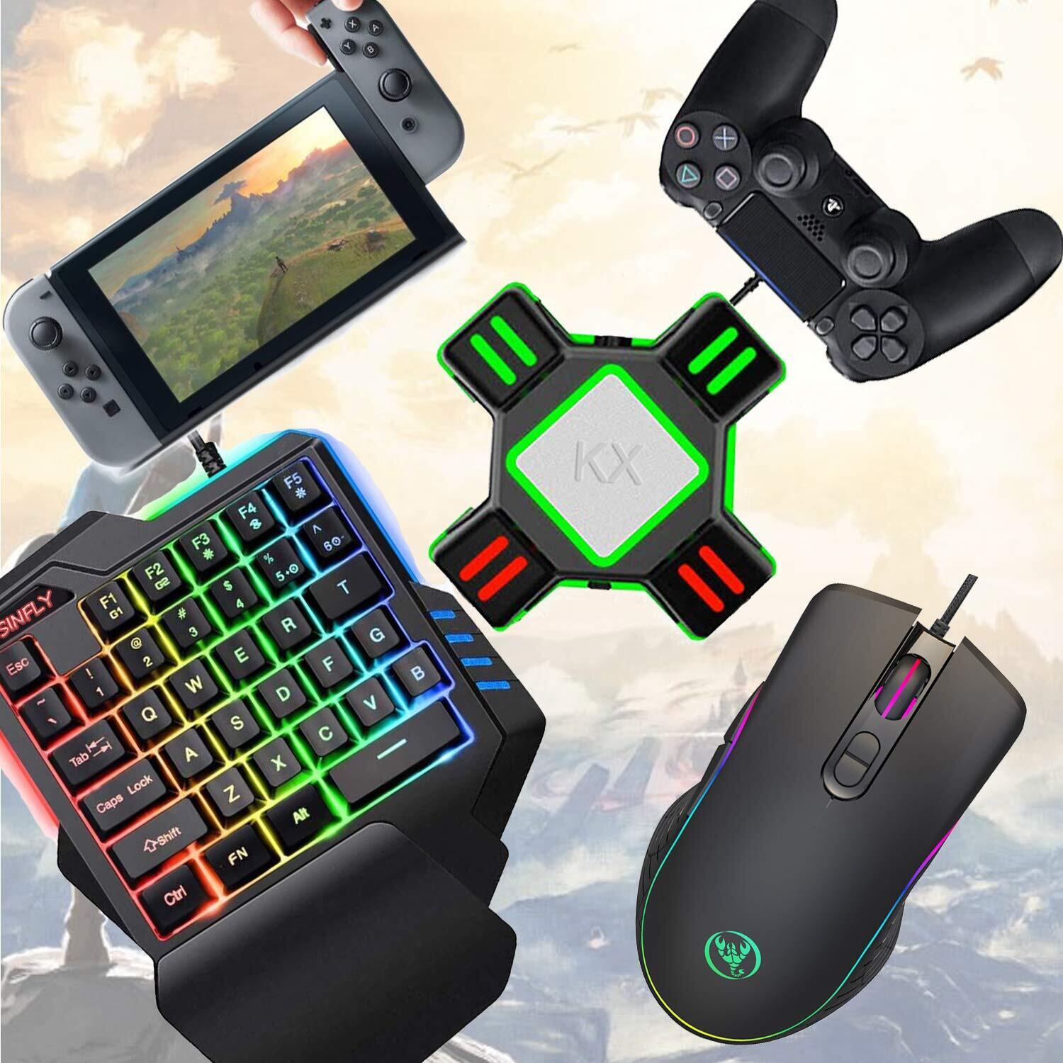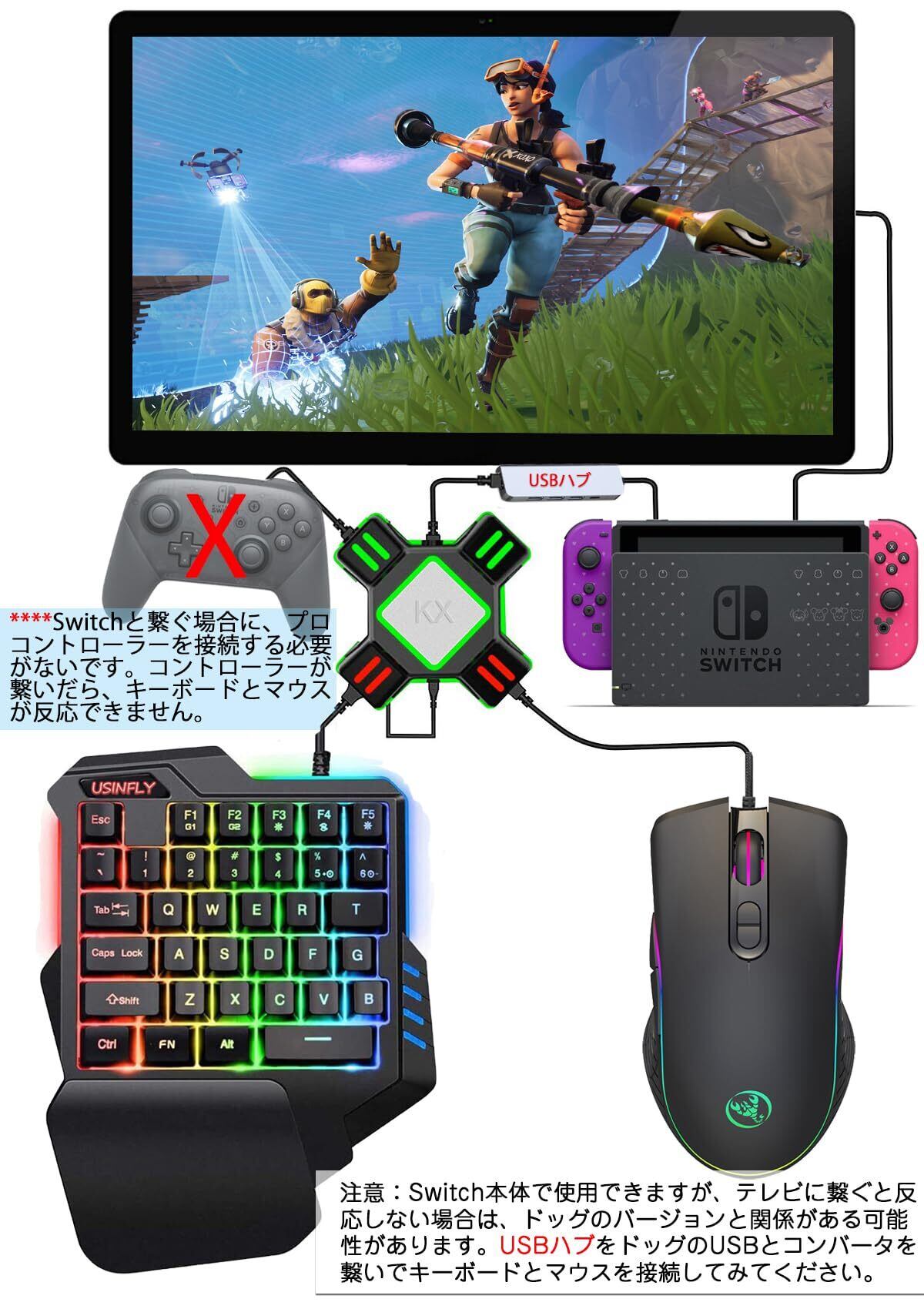 片手キーボード マウス コンバーター セット switch対応 フォートナイト用キーボード Switch/switch lite/PS4/PS3/Xbox対応 RGBゲーミングキーボード ゲーミングマウス 接続アダプターFPS/TPS/RPG/RTSなどに最適 日本語説明書付き USINFLY