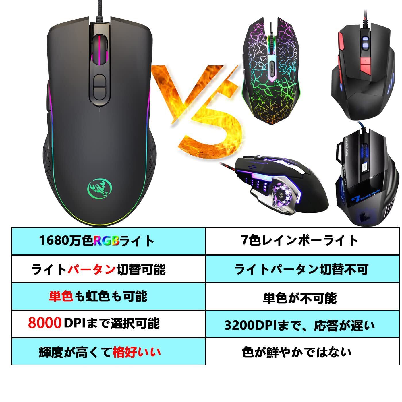 ️【キーボードもマウスもRGBタイプ】他の製品と比べて、キーボードもマウスもRGBタイプです。RGBキーボードは虹色/7種の単一色、イルミネーション、ライトON/OFFを切替えられるだけではなく、ライト点滅のスピードも調節できます。RGBマウスはイルミネーション、ライトON/OFFを選べ、ゲームの雰囲気を一気に盛り上げます。かこいいライトが光り、暗い場所でも正しくキーの位置を確認でき、難なくタイピングとプレイすることができます。