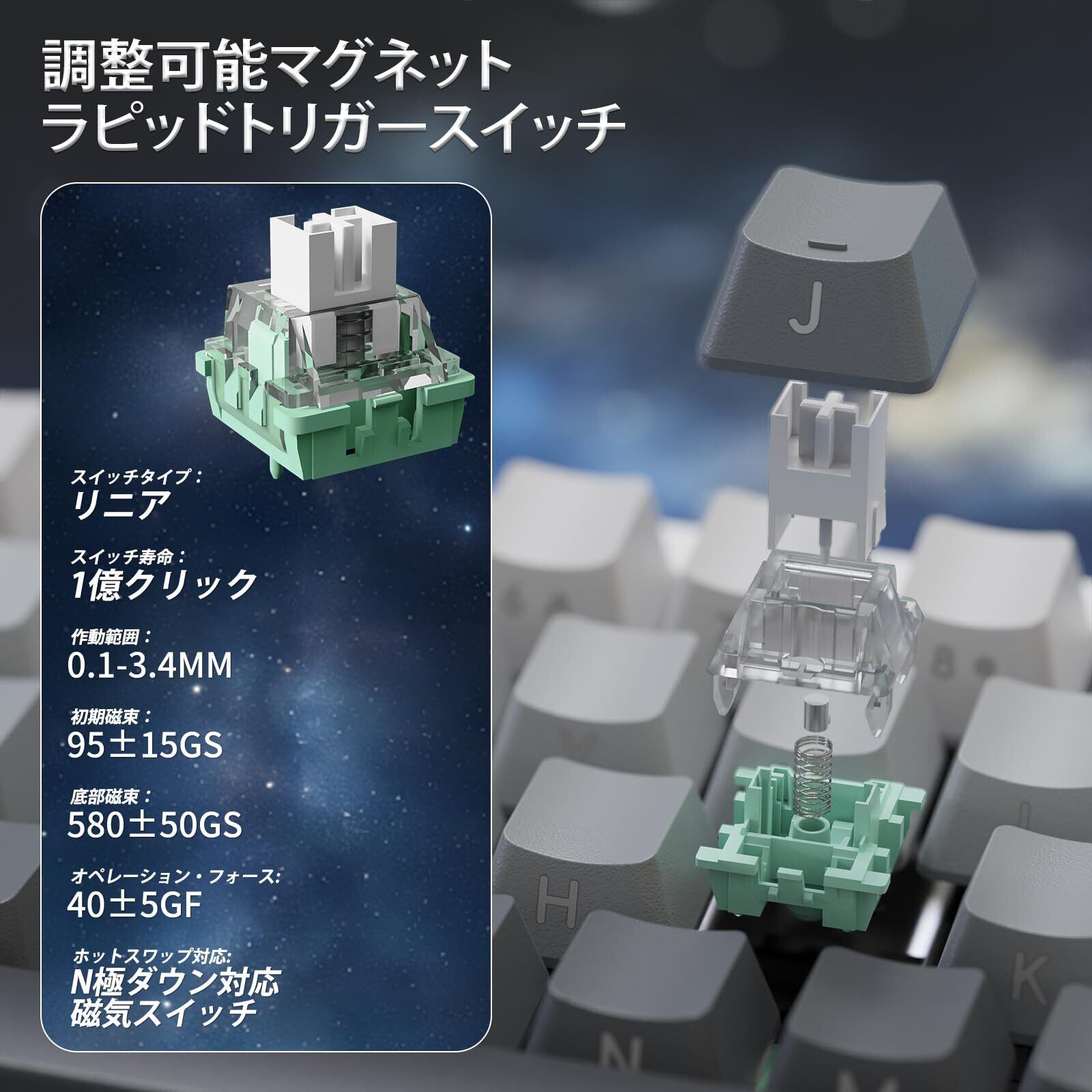 このX68PROゲーミングキーボードは、磁気スイッチを採用しており、わずか0.01msの反応速度を誇ります。これにより、瞬時の動きやキーボード操作が求められるFPSゲームやアクションゲームでも、遅延を感じることなく快適にプレイすることができます。
