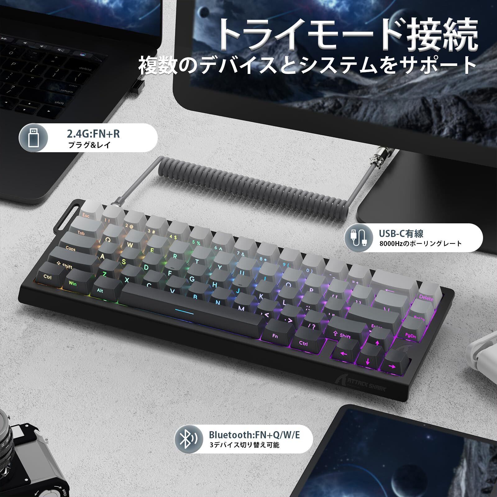 この「ATTACK SHARK ラピットトリガーキーボードとマウスセット」で、あなたのゲームライフを充実させましょう!快適さとパフォーマンスを両立させ、次の戦いに挑む準備を整えてください。