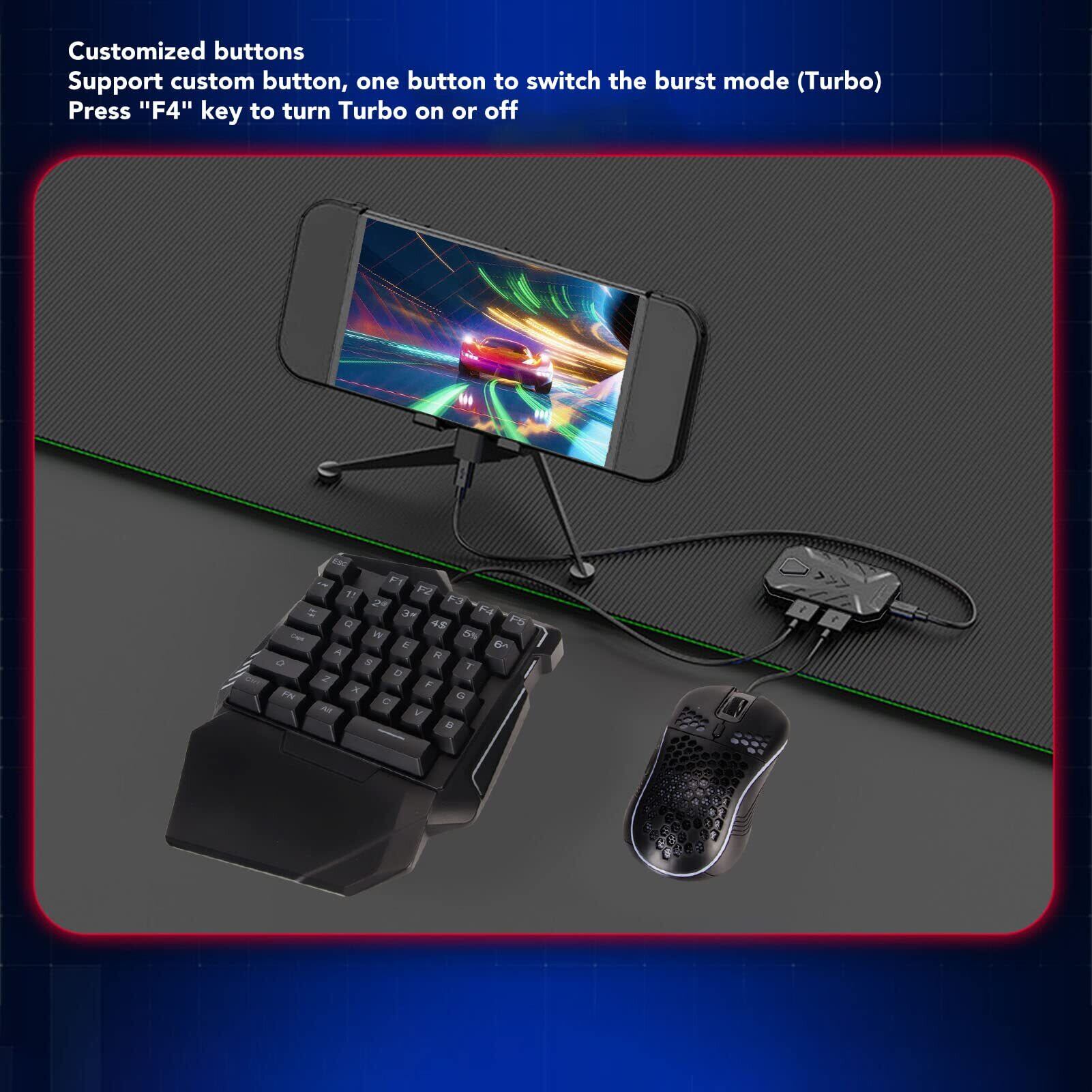 カスタマイズ可能なキー:ゲーミングキーボードとマウスコンバータはカスタマイズ可能なキーをサポートしており、ワンクリックでターボモードを切り替え、「F4」を押してターボ機能をオンまたはオフにします。
