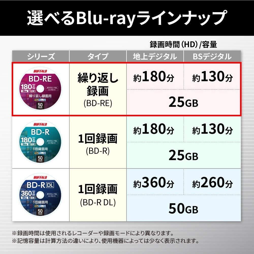 バッファロー ブルーレイディスク BD-RE くり返し録画用 25GB 10枚 スリムケース 片面1層 1-2倍速 【 ディーガ(2016年発売以降) 動作確認済み 】 ホワイトレーベル RO-BE25V-010CW/N
