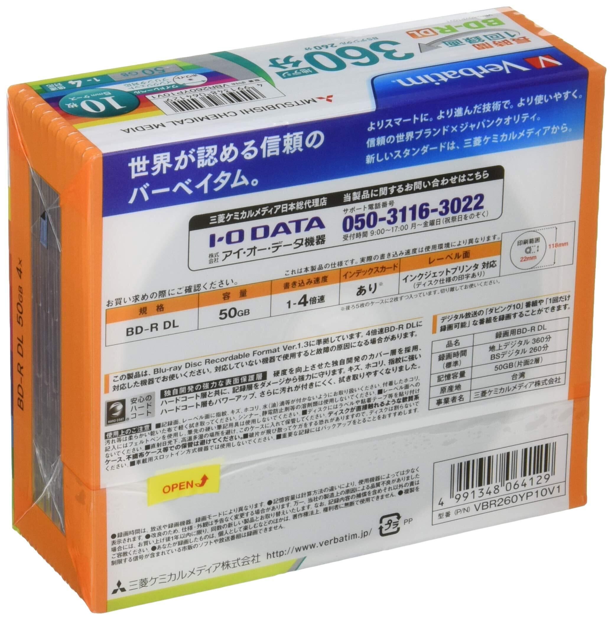 Verbatim バーベイタム 1回録画用 ブルーレイディスク BD-R DL 50GB 10枚 ホワイトプリンタブル 片面2層 1-4倍速 VBR260YP10V1