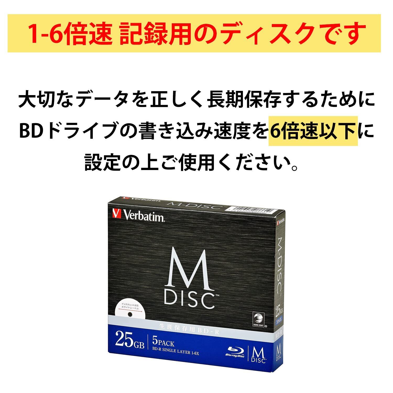 バーベイタム(Verbatim) バーベイタム Verbatim 長期保存 M-DISC BD-R 1回記録用 1-6倍速 25GB 5枚 印刷対応ホワイトレーベル ブルーレイディスク DBR25RMDP5V2
