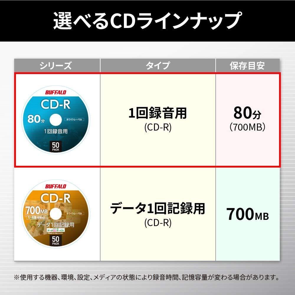 バッファロー 音楽用 CD-R 1回録音 80分 700MB 50枚 スピンドル ホワイトレーベル RO-CR07M-050PW/N