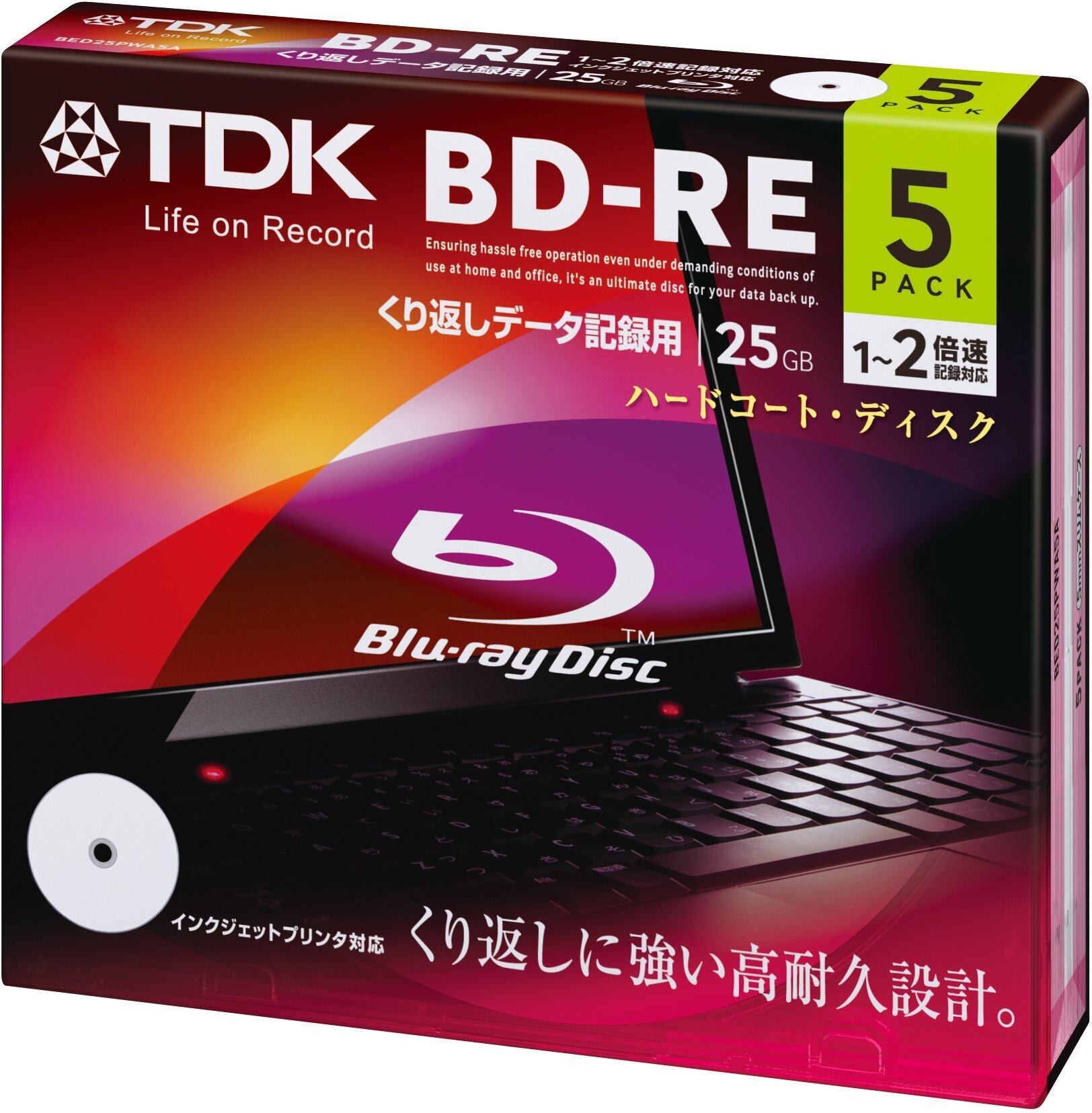 TDK データ用ブルーレイディスク BD-RE 25GB 1-2倍速 ホワイトワイドプリンタブル 5枚 5mmスリムケース BED25PWA5A