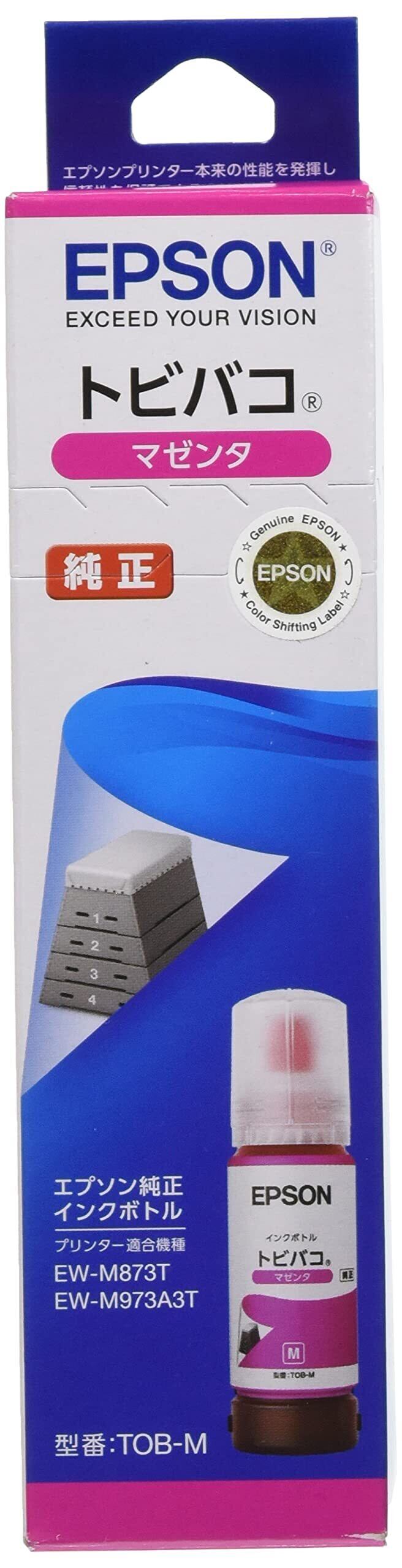 この「エプソン 純正 インクボトル トビバコ TOB-M マゼンタ」は、高品質な印刷を実現するために設計されています!明るく鮮やかなマゼンタの色味が、印刷物に美しい発色を与え、大切な文書や写真を引き立てます。