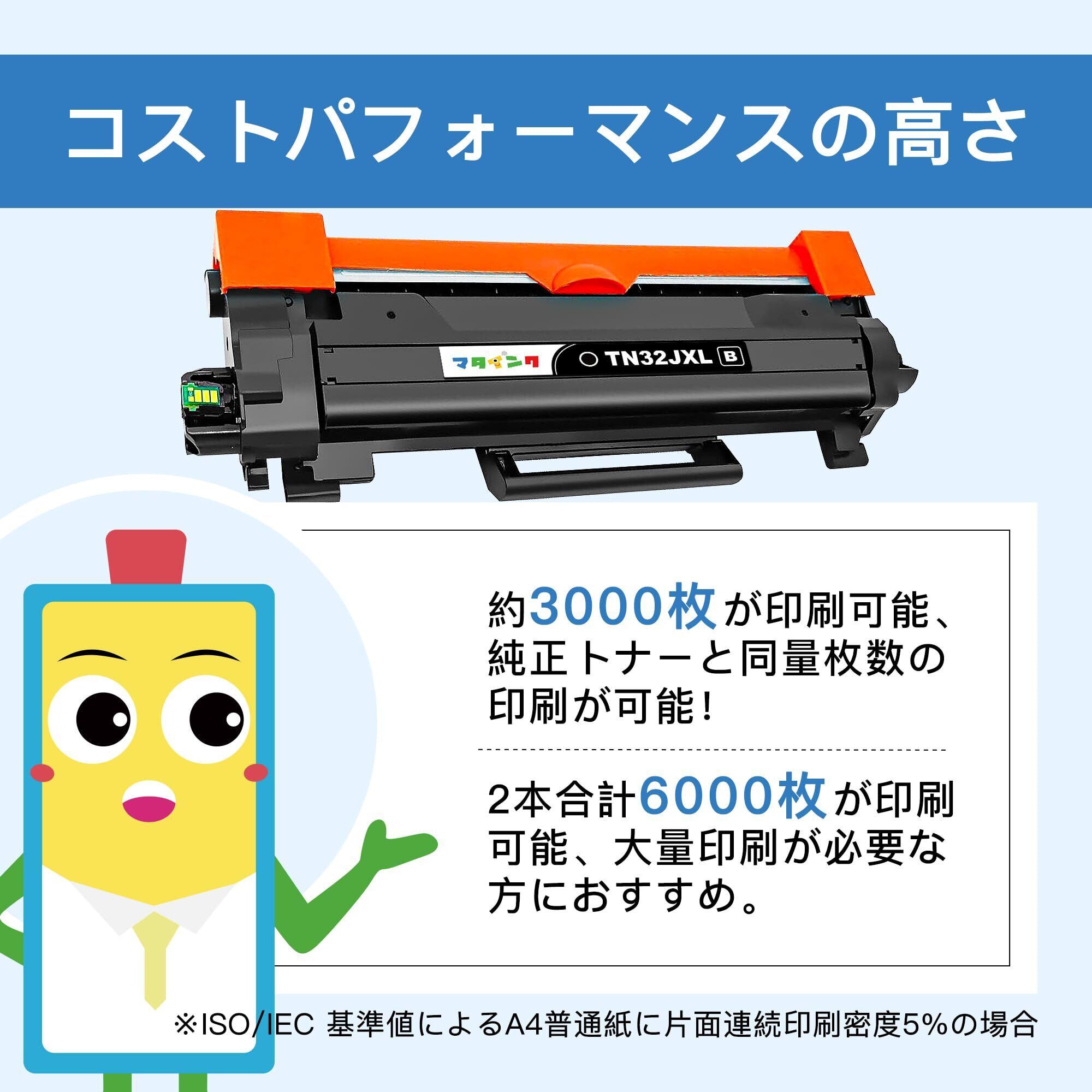 【全色増量】お得な大容量セット!弊店のBrother用 トナーカートリッジ TN-32JXL には約3000枚が印刷可能。弊店の TN-32JXL には高品質原料を採用して、色が長持ちします。プリントの乾燥がもっと速くなります、時間が節約でき、作業効率も上がります!