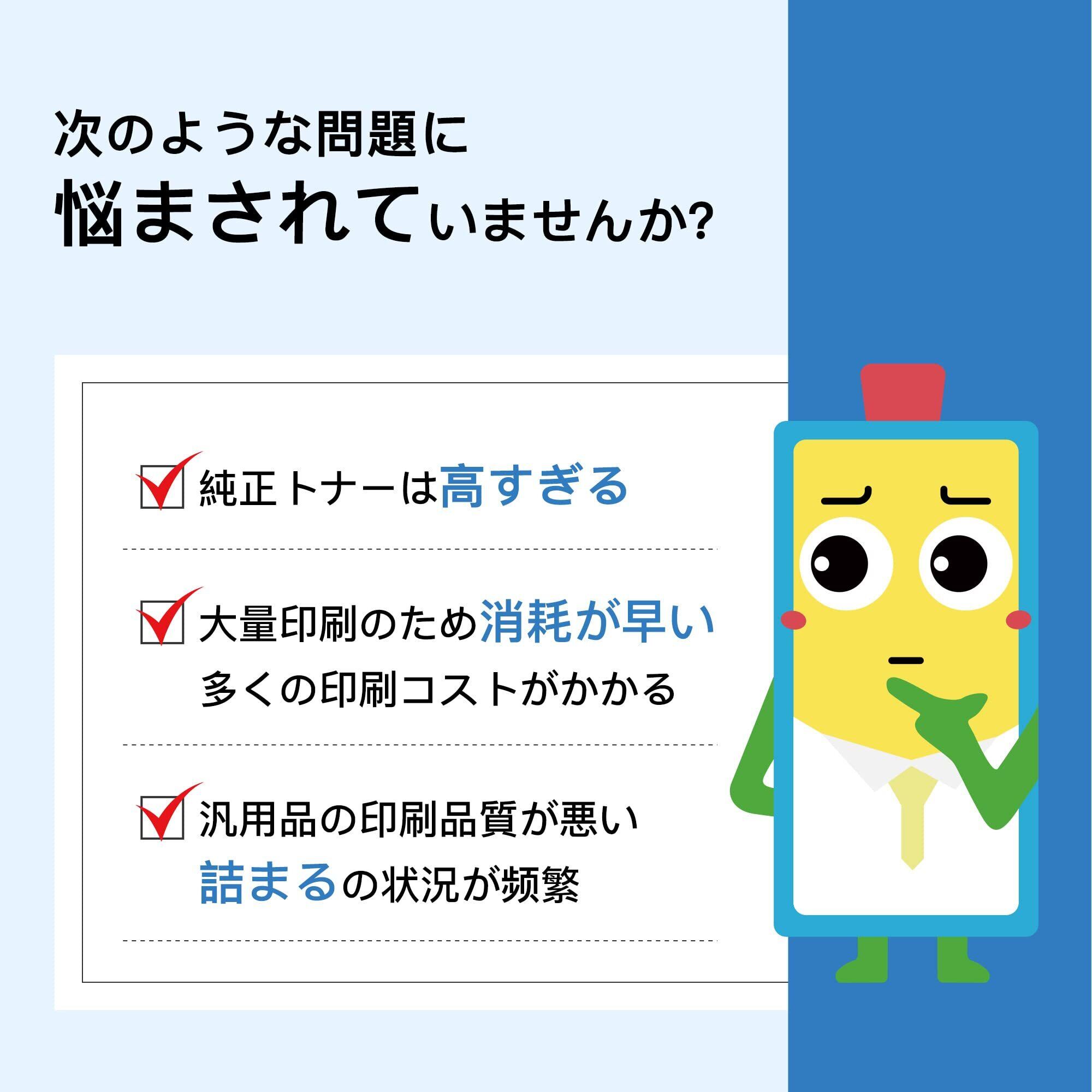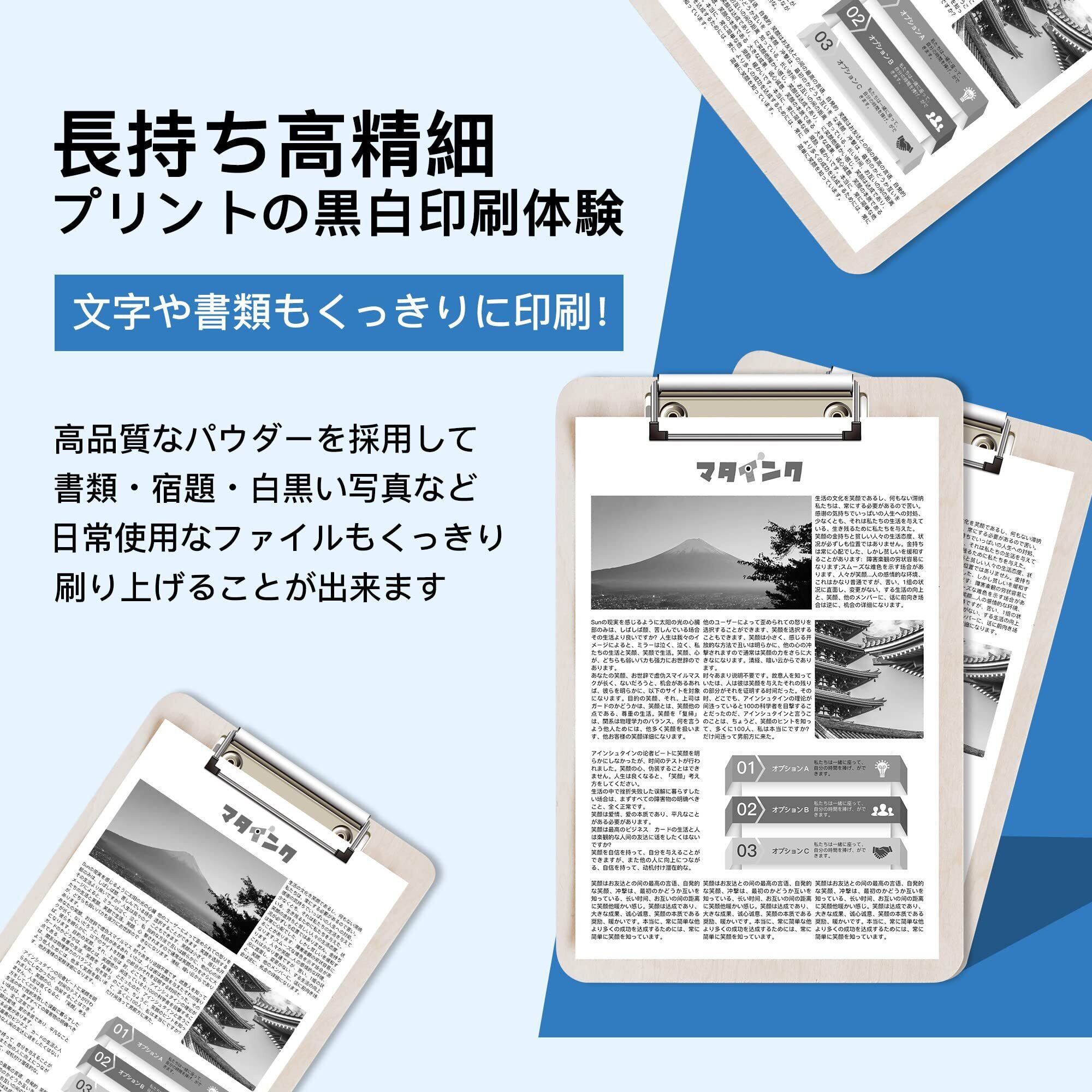 本トナーカートリッジには、高品質なトナーを使用しており、鮮明で美しい印刷結果を実現!ビジネス文書や重要な資料の印刷でも、安心してご利用いただける品質です。