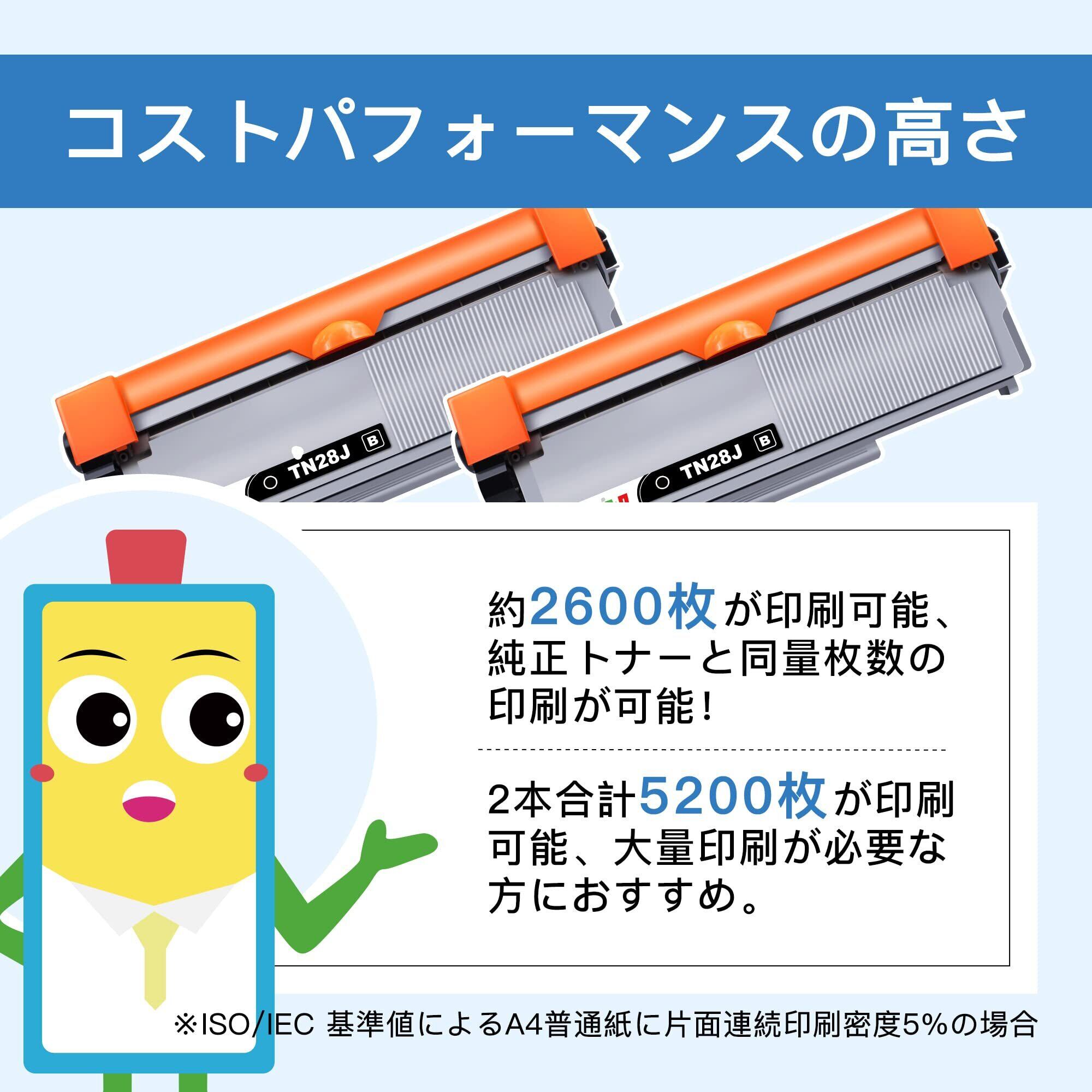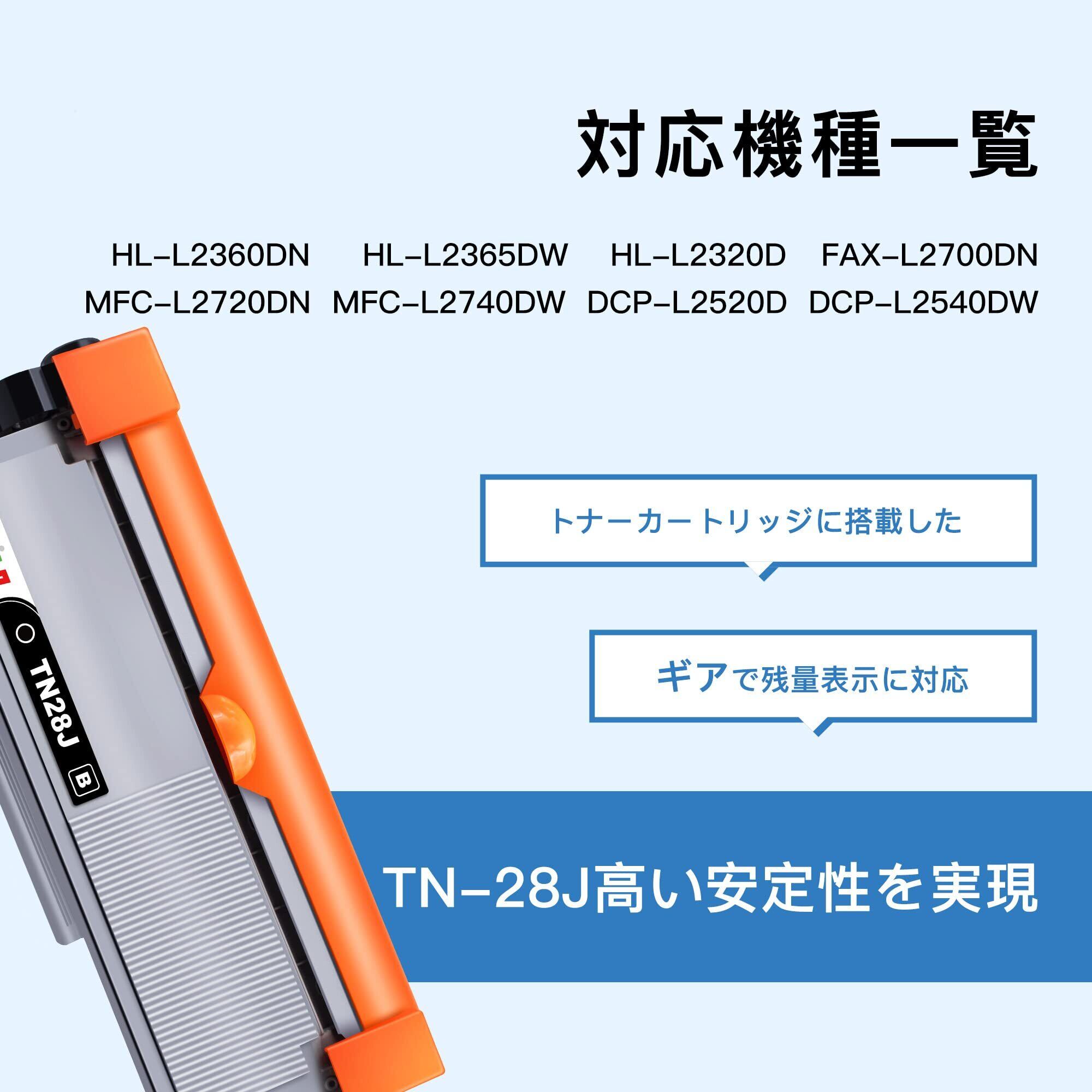 TN-28J 互換トナーカートリッジ ブラザー(Brother)対応 TN28J 28J ブラック 2本セット 互換トナー 印刷枚数純正と同量の約2600枚 対応機種:HL-L2320D HL-L2360DN HL-L2365DW DCP-L2520D DCP-L2540DW MFC-L2720DN MFC-L2740DW FAX-L2700DN 大容量 残量表示 個包装