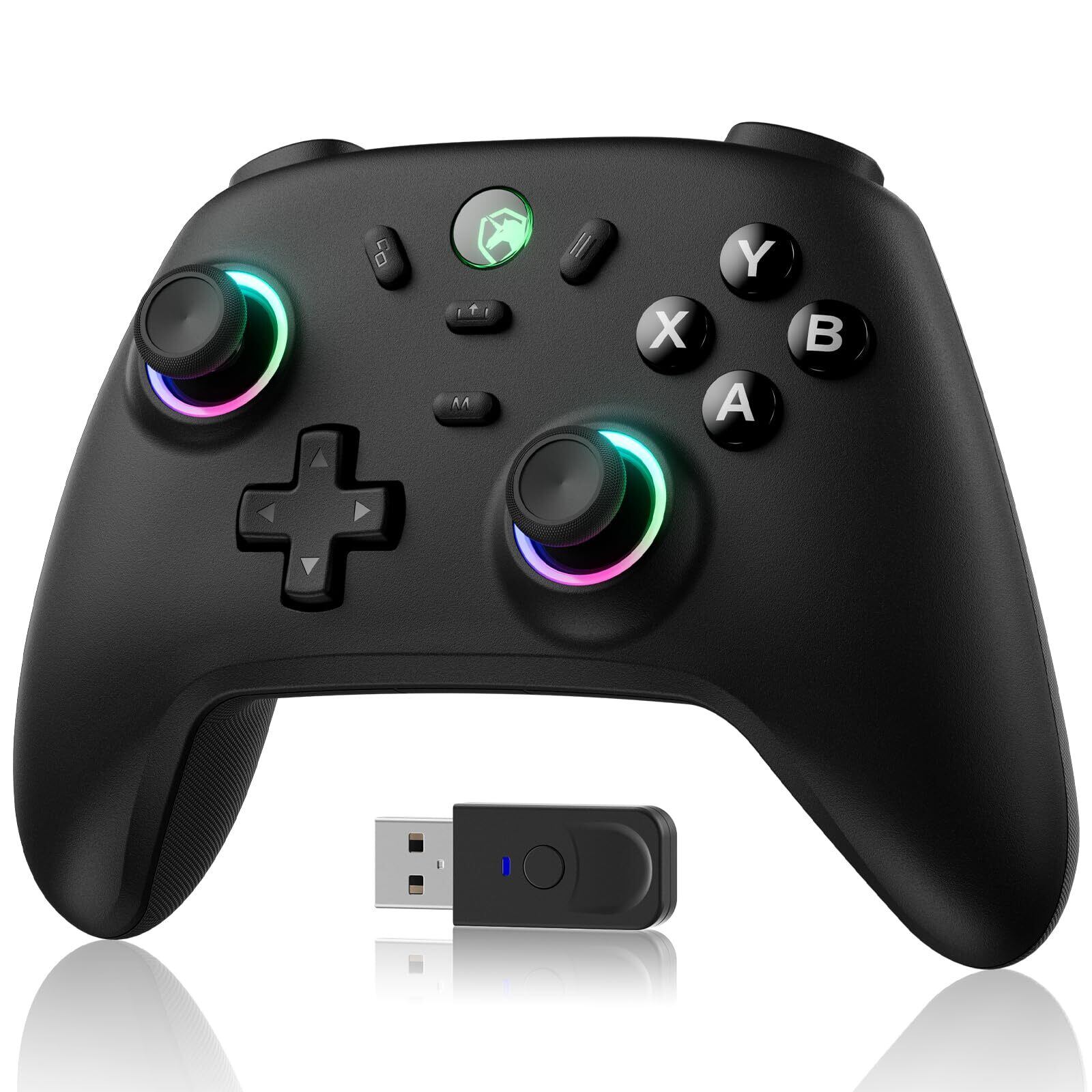 PC コントローラー 無線/有線接続 2.4Gレシバー付き ホール効果スティック RGBライト 1000Hz ポーリングレート TURBO連射 振動調整 800mAhバッテリー PC/Steam deck/Switch/Android/iOSに対応 ブラック