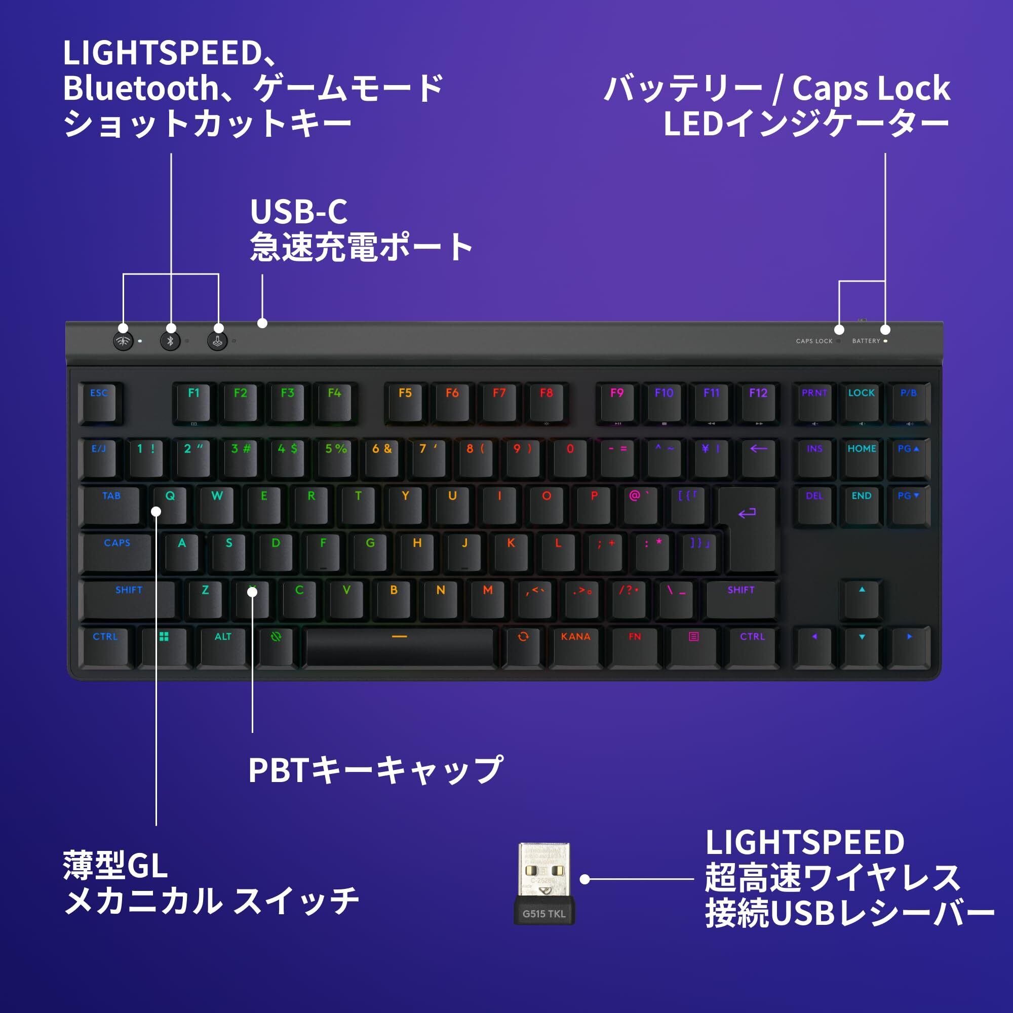 Logicool G ゲーミングキーボード G515 LIGHTSPEED TKL 薄型 ワイヤレス テンキーレス キーボード G515-WL-LNBK リニア 赤軸 静かなタイピング 日本語配列 LIGHTSPEED Bluetooth 接続対応 LIGHTSYNC RGB PC ブラック 国内正規品