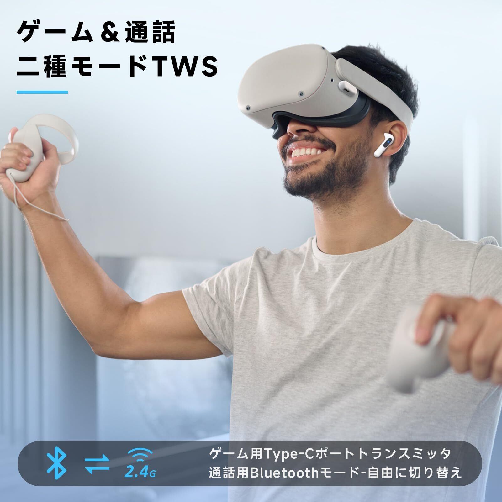 【二種接続方式】: RYR Neo100ゲーミングワイヤレスイヤホンは、Bluetooth5.3 と 2.4G Type-Cポートトランスミッタを同時にMeta Quest 3/2、PC、PS5、PS4、または Switch に接続でき、ゲームプレイを一時停止することなく通話に応答できます。