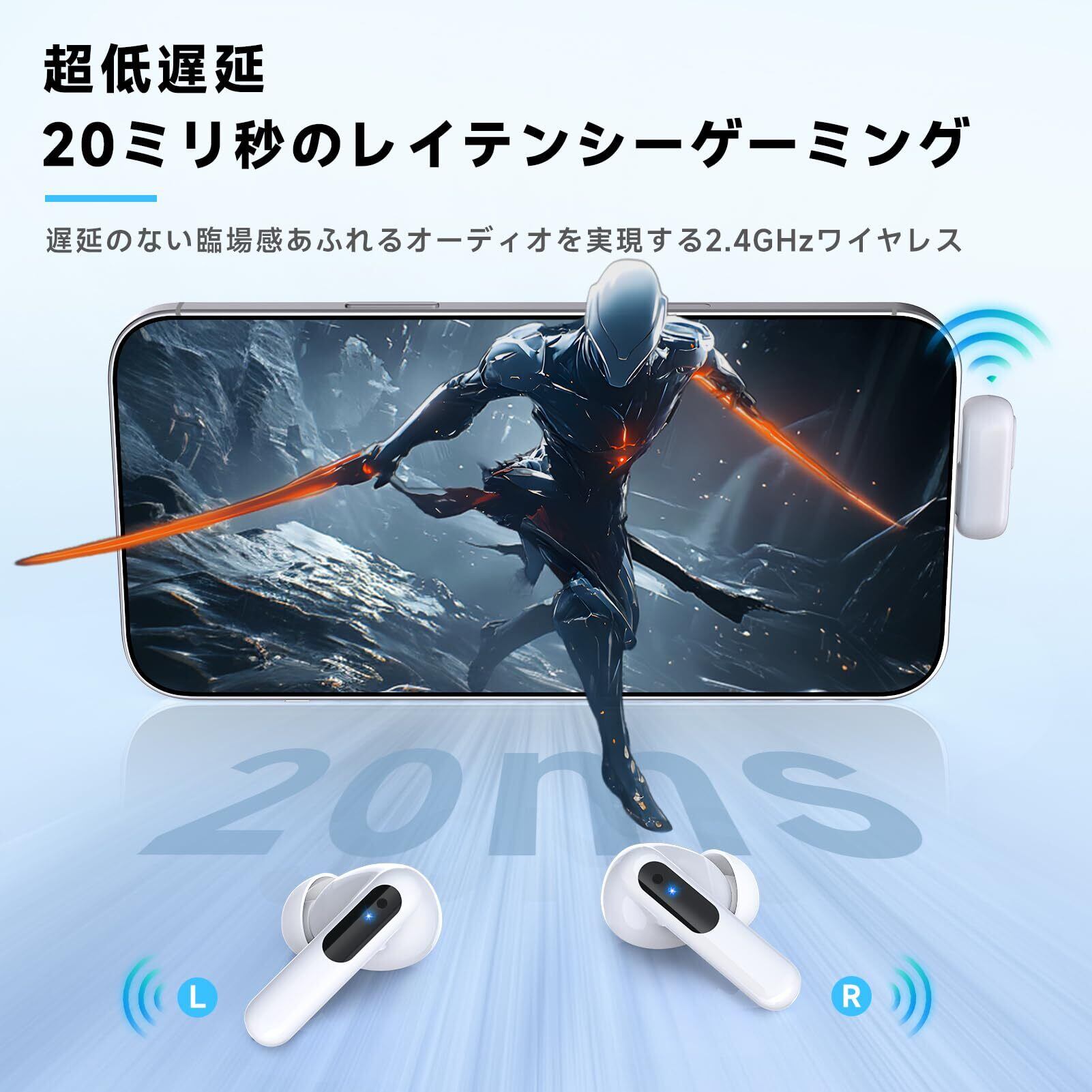 RYR ゲーミングイヤホン ワイヤレス Bluetooth5.3 と 2.4G Type-C 2台同時無線接続/20ms未満の超低遅延/最大36時間再生/2つの内蔵ノイズキャンセリングマイク/3Dサラウンドサウンドゲーム&通話/LEDバッテリー ディスプレイ/急速充電/IPX4防水 Meta Quest 3/2, PS5/4, VR, Switch, PC, Phone対応 (ホワイト)