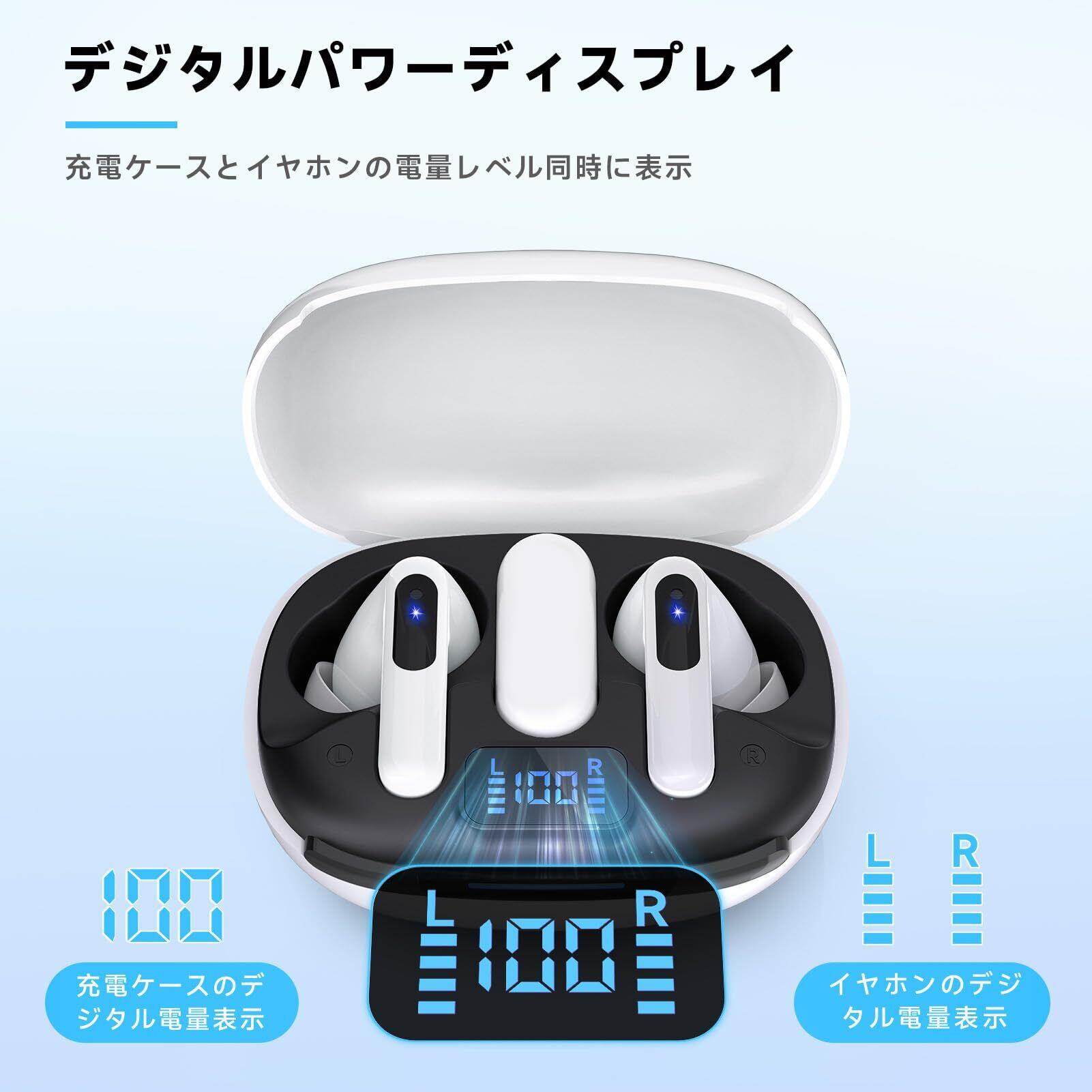 【LEDバッテリー ディスプレイと36 時間の再生】:ケース内のデュアル デジタル LED バッテリー ディスプレイは、充電ケースとイヤホンの電力レベルを表示します。ケースを充電すると、LEDライトが1から100 まで点滅し始めます。500mAh のバッテリー容量の充電ケースは、両方のイヤホンをさらに 3.5 回フル充電でき、各イヤホンの Bluetoothモード で1 回の充電で 8 時間持続します。そのため、交互に使用することで合計 36 時間の音楽を楽しむことができます。