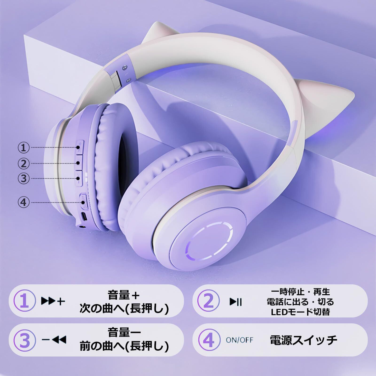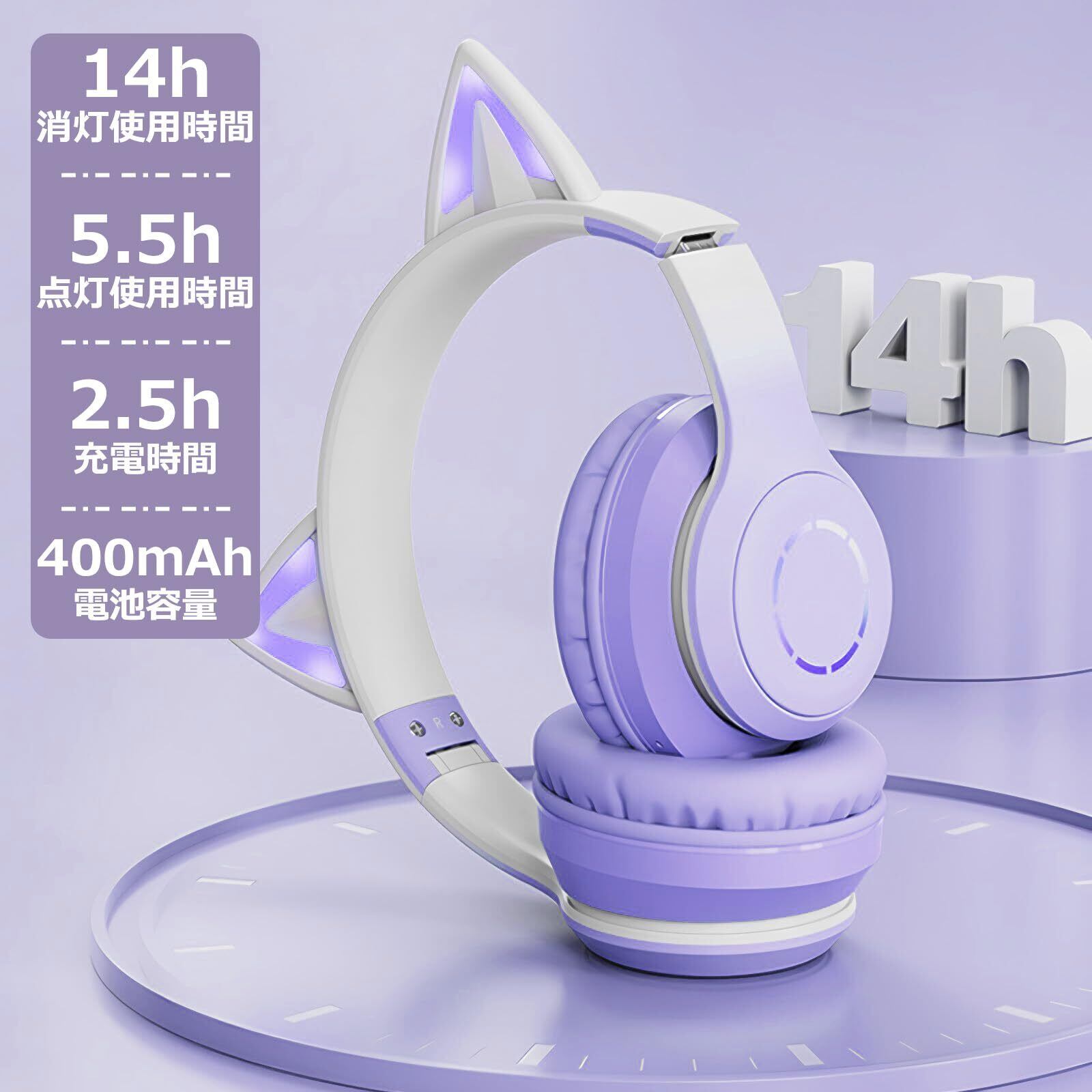 猫耳ヘッドホン オーバーイヤー ゲーミングヘッドセット bluetooth 5.1 マイク付き ワイヤレス/有線両用 LEDライト 伸縮式 折りたたみ式 HiFi 通話対応 iPhone/iPad/Android/PC