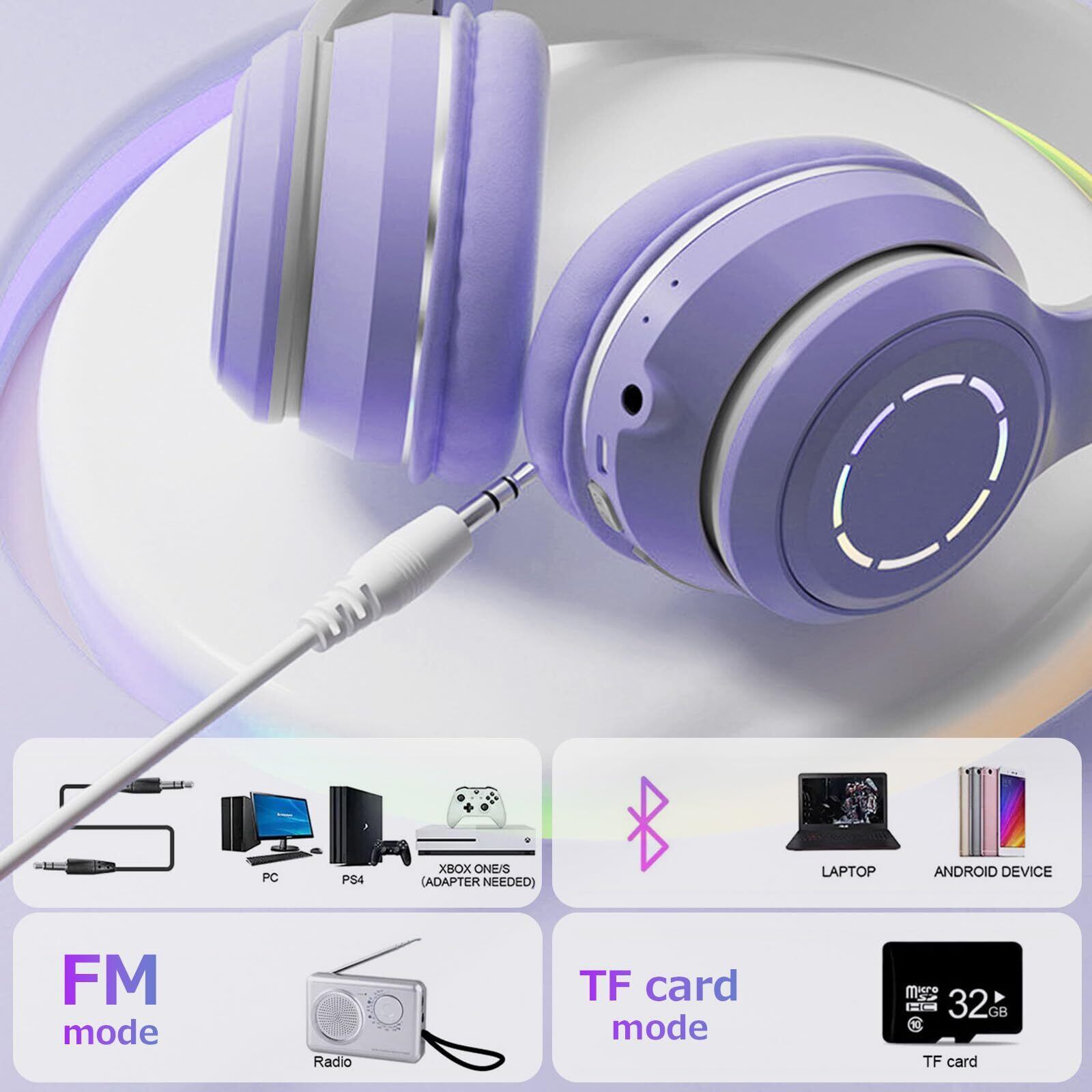【かわいい猫耳&虹色ライト変換】新登場のキャットイヤーヘッドフォンは、大人と子供の両方に非常に人気があります。音楽を楽しんでいる間に、ライトが同時に変わり、きらきらでとてもかわいく見えます。一人ゲームでも友達とゲームやる時でも、猫耳や虹色ライトでゲームの雰囲気をもっと盛り上げます。