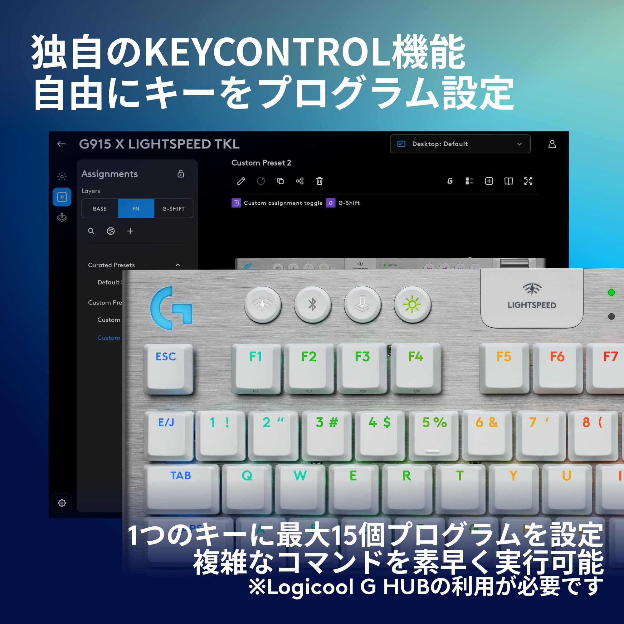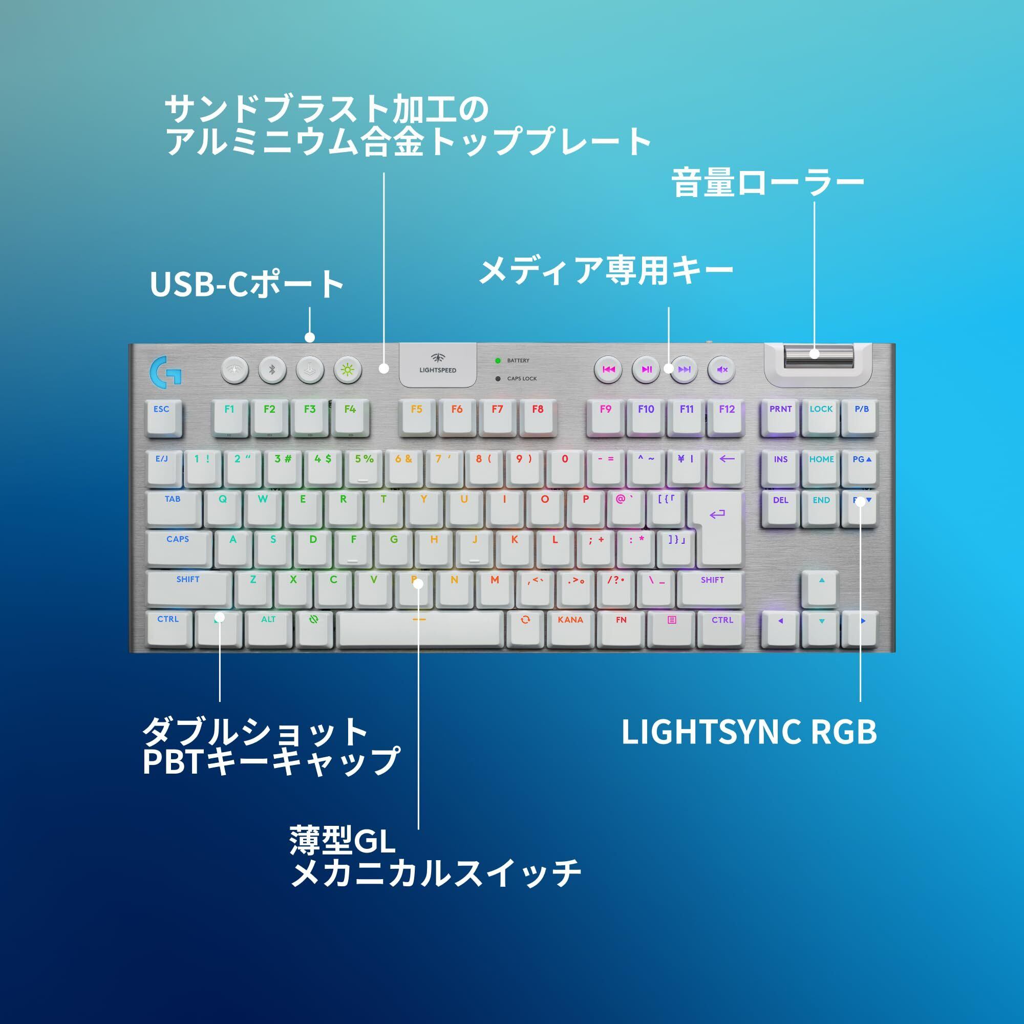 Logicool G ゲーミングキーボード G915 X LIGHTSPEED TKL 薄型 ワイヤレス テンキーレス G915WLX-TKL-TCWH タクタイル 茶軸 確かな打鍵感 日本語配列 Bluetooth LIGHTSYNC RGB キーボードメカニカルキーボード 国内正規品 ※ 壁紙ダウンロード付き