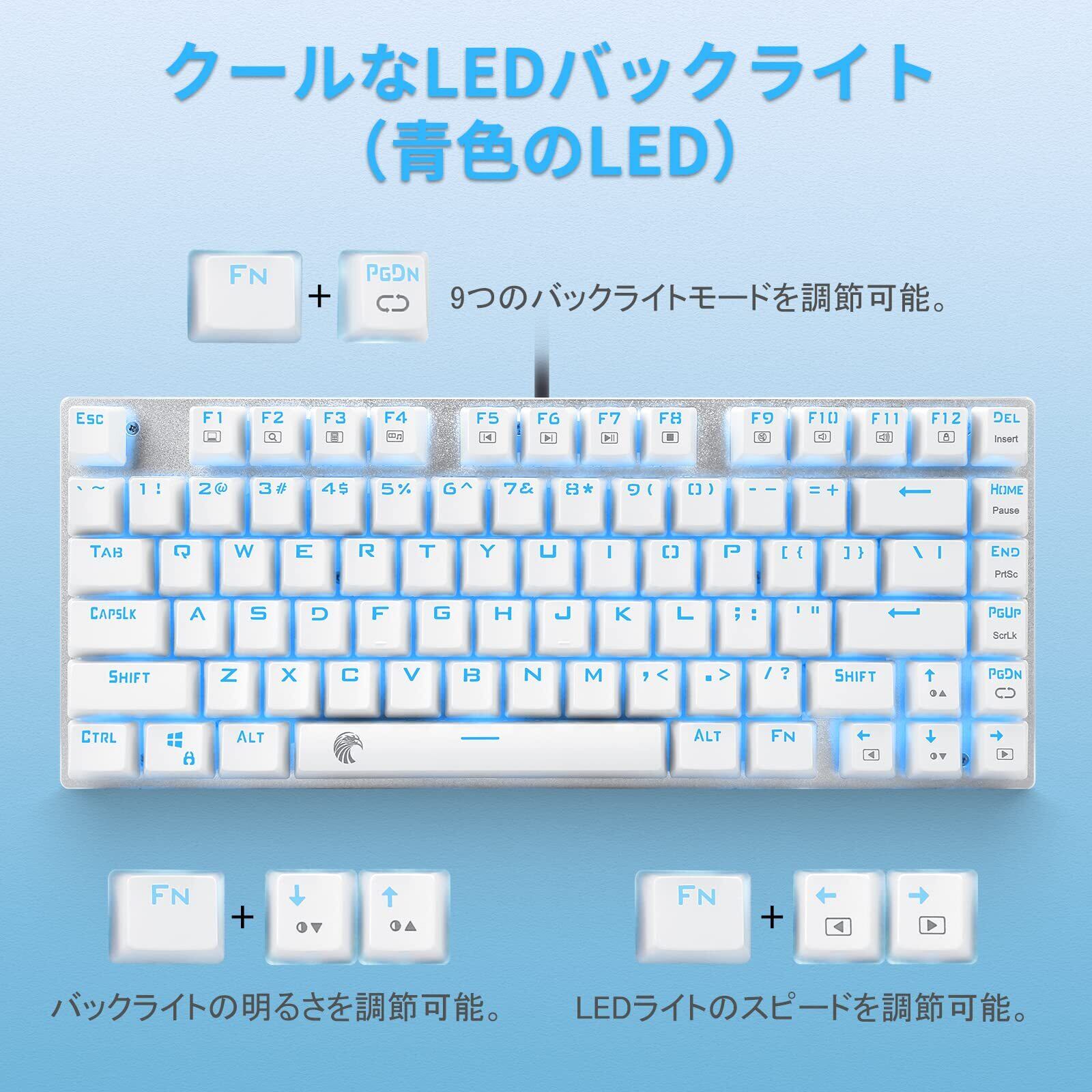 e元素ゲーミングキーボード81キー 赤軸メカニカル式キーボード USB接続有線 アンチゴーストキー 青色LEDバックライト 防水機能付きゲーマー向け英語配列キーボード (赤軸・ホワイト)