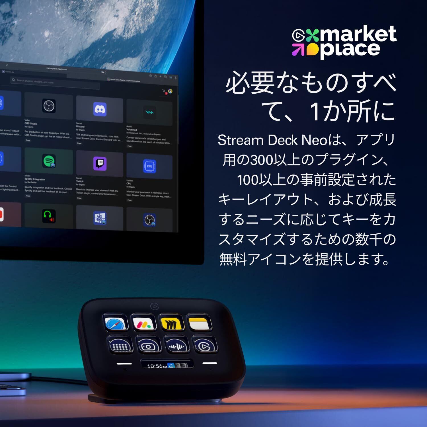 Elgato Stream Deck Neo ブラック – カスタム可能な8個のキー、2つのTouch Points、タスクとワークフローを加速 – Word、Excel、PowerPoint、Teams、Zoom、Spotify、その他をコントロール、ドラッグ&ドロップで設定可能 – MacとPCに対応