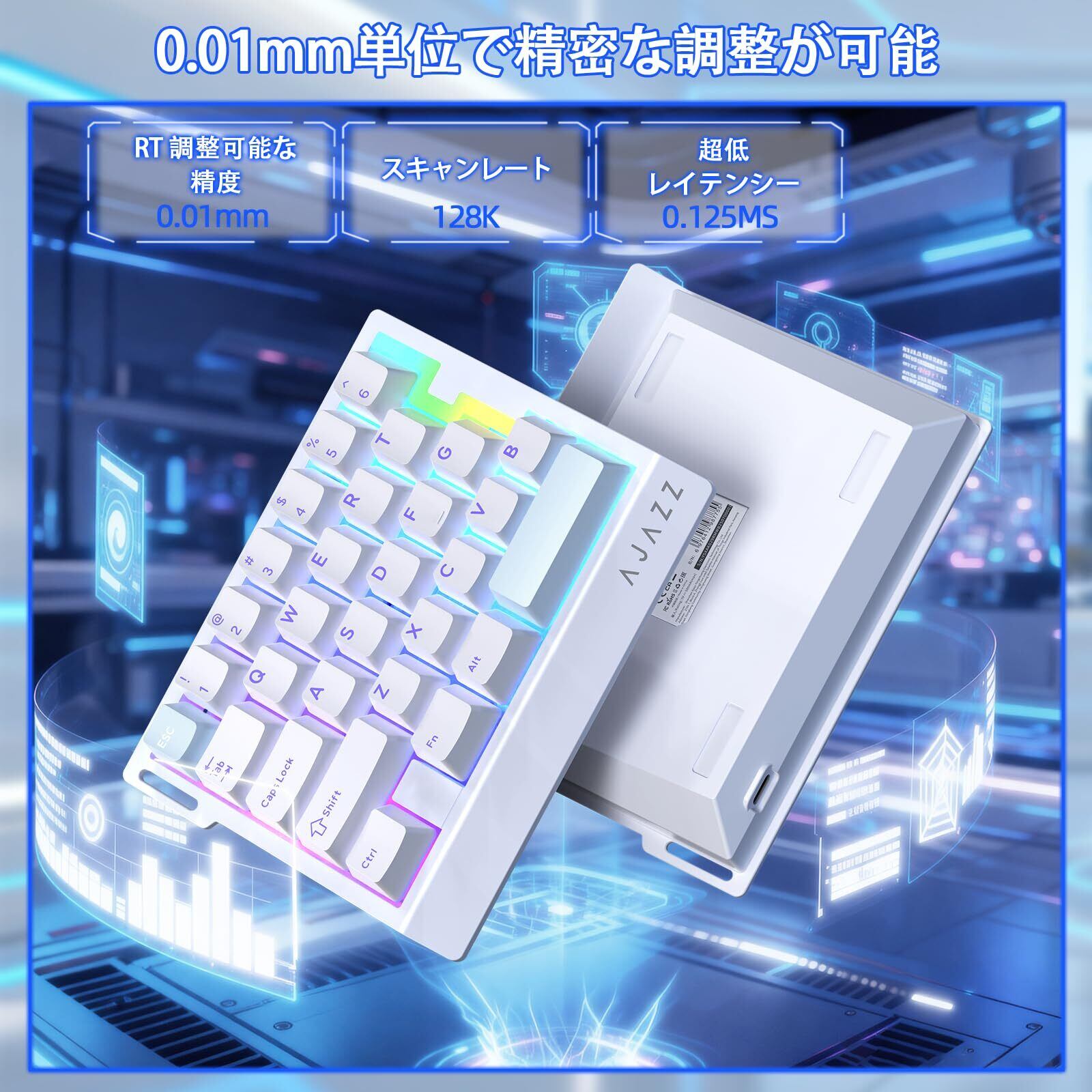 AJAZZ AK029 片手ゲーミングキーボード メカニカルキーボード ラピッドトリガー対応 29キー配列 磁軸対応 8000Hzポーリングレート0.01mm RT精度 0.125ms超低遅延 アルミニウム合金プレート 5層消音構造 RGBバックライト カスタマイズ可能 マクロ 人間工学 左手用 Windows/MAC対応 ホワイトブルー