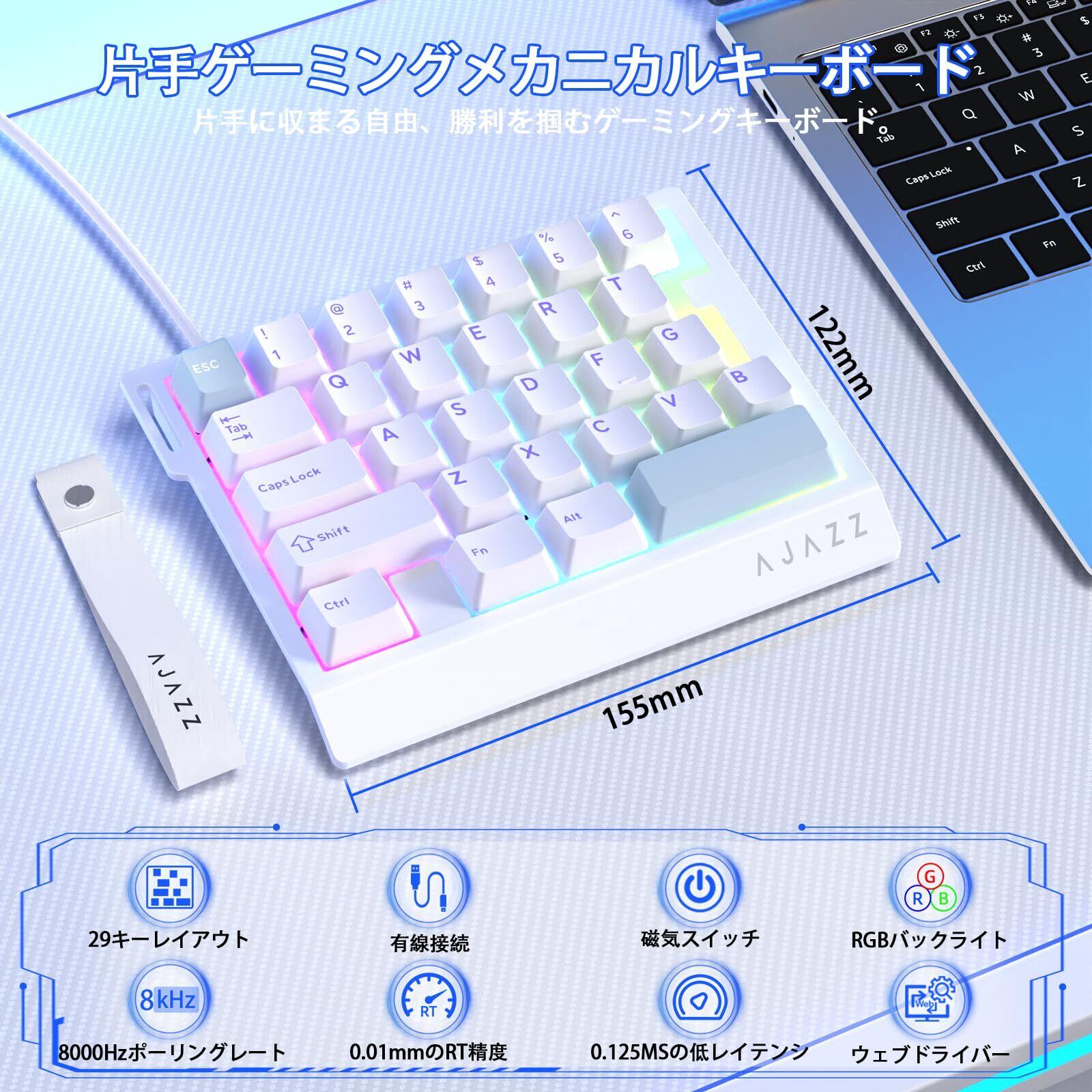 AJAZZ AK029 片手ゲーミングキーボード|メカニカルキーボード|ラピッドトリガー対応|29キー配列|磁軸対応|8000Hzポーリングレート|0.01mm RT精度|0.125ms超低遅延|アルミニウム合金プレート|5層消音構造|RGBバックライト|カスタマイズ可能|マクロ|人間工学|左手用|Windows/MAC対応|ホワイトブルー
