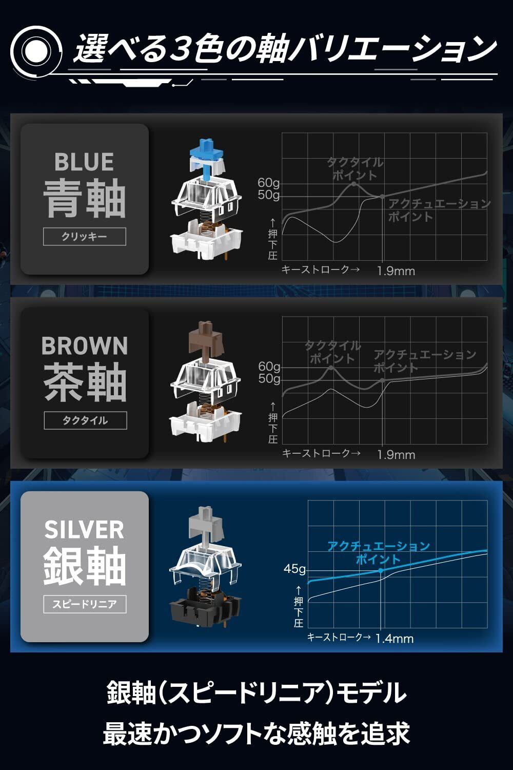 ■キータイプ:メカニカル(銀軸/スピードリニア)