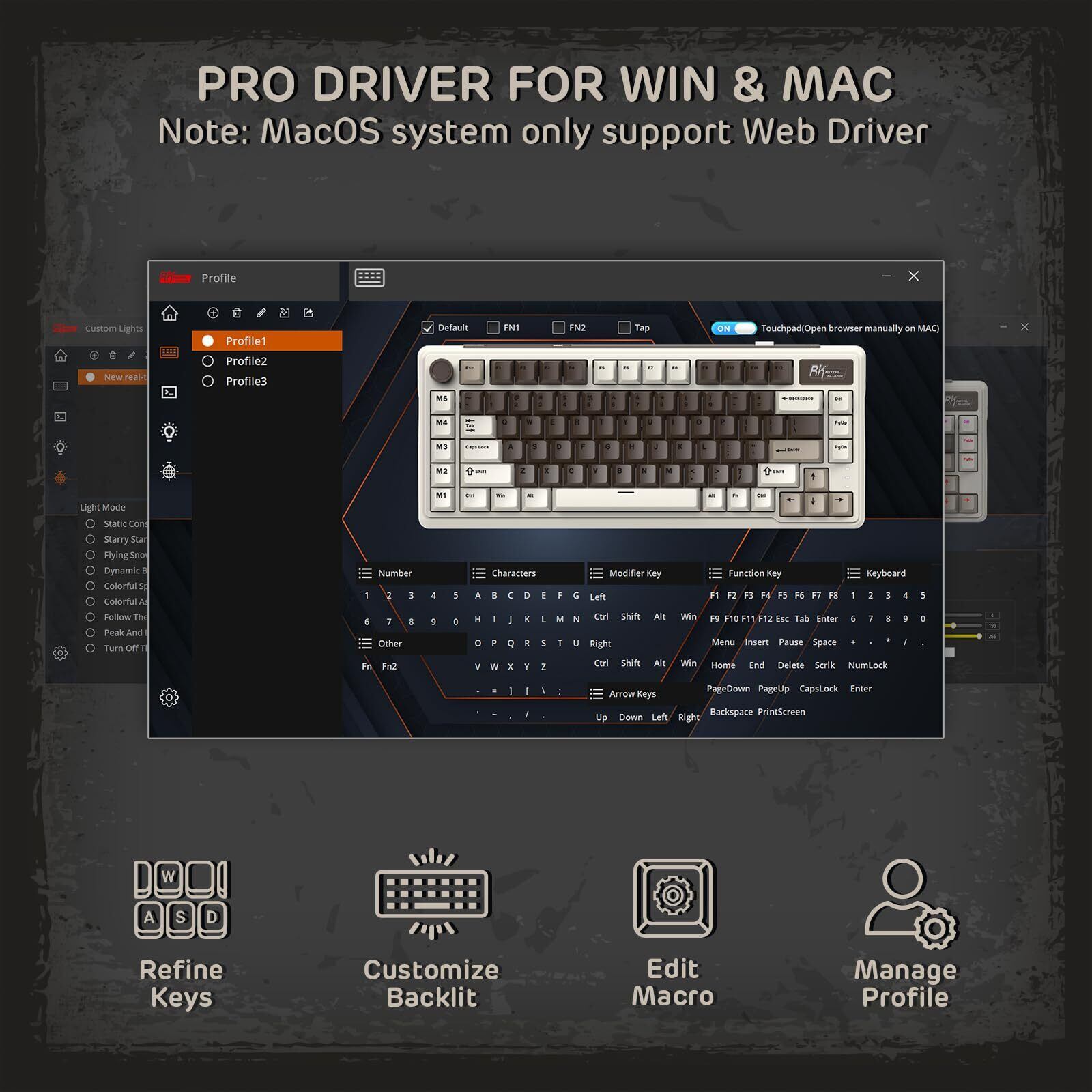 革新的なタッチセンサー・ネームプレートを採用したRK L75は、WIN/MAC両対応のソフトウェアでタッチ操作をカスタマイズできます。お気に入りのウェブサイトへのナビゲート、マクロのトリガー、パーソナライズされたコマンドの起動など、すべてを指先で操作できます。