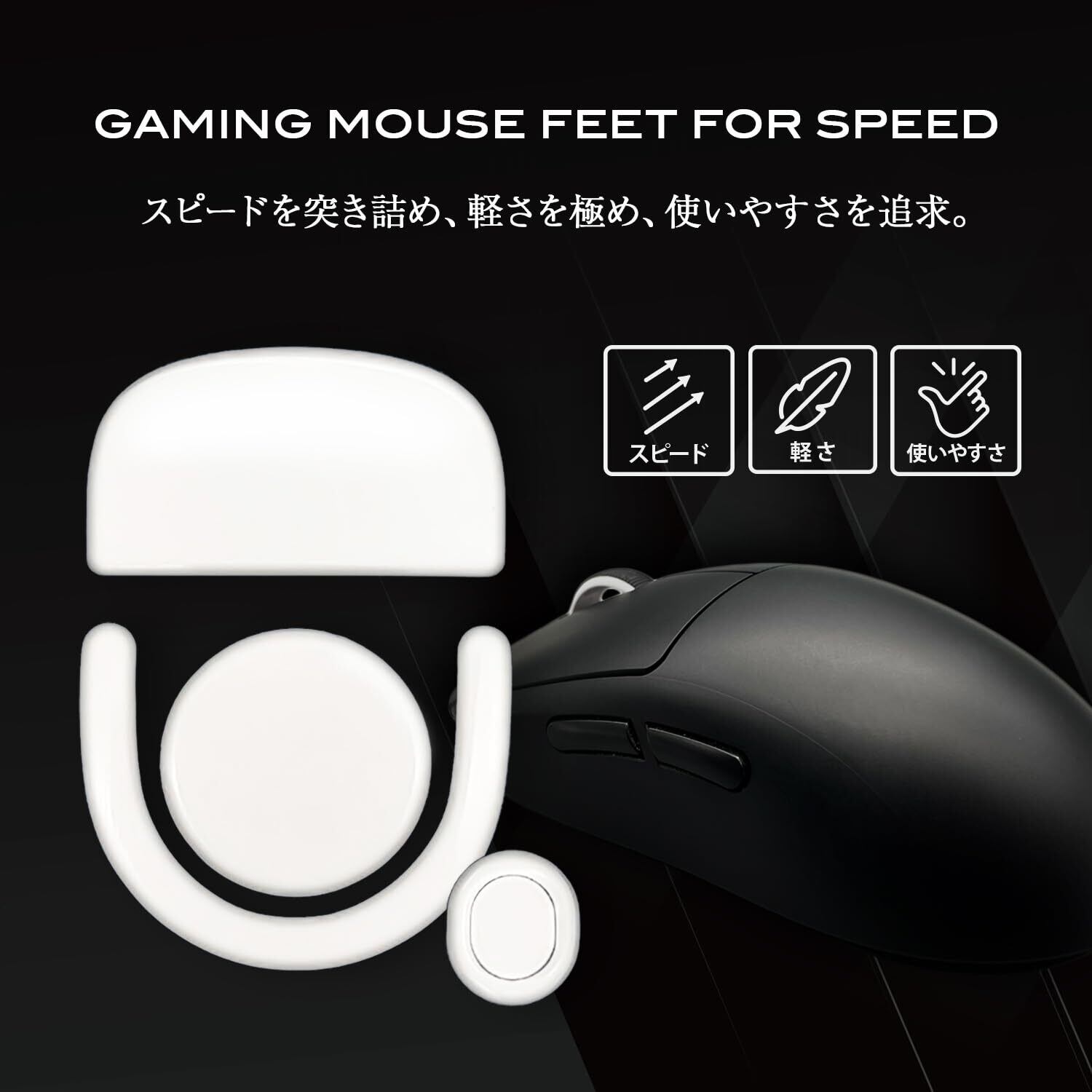 耐摩耗性に優れたSURUGAのPTFE素材を使用しており、長時間の使用でも摩耗しにくく、パフォーマンスの低下を防ぎます。軽量設計で、マウスの動きがよりスムーズになることを実感できるでしょう。