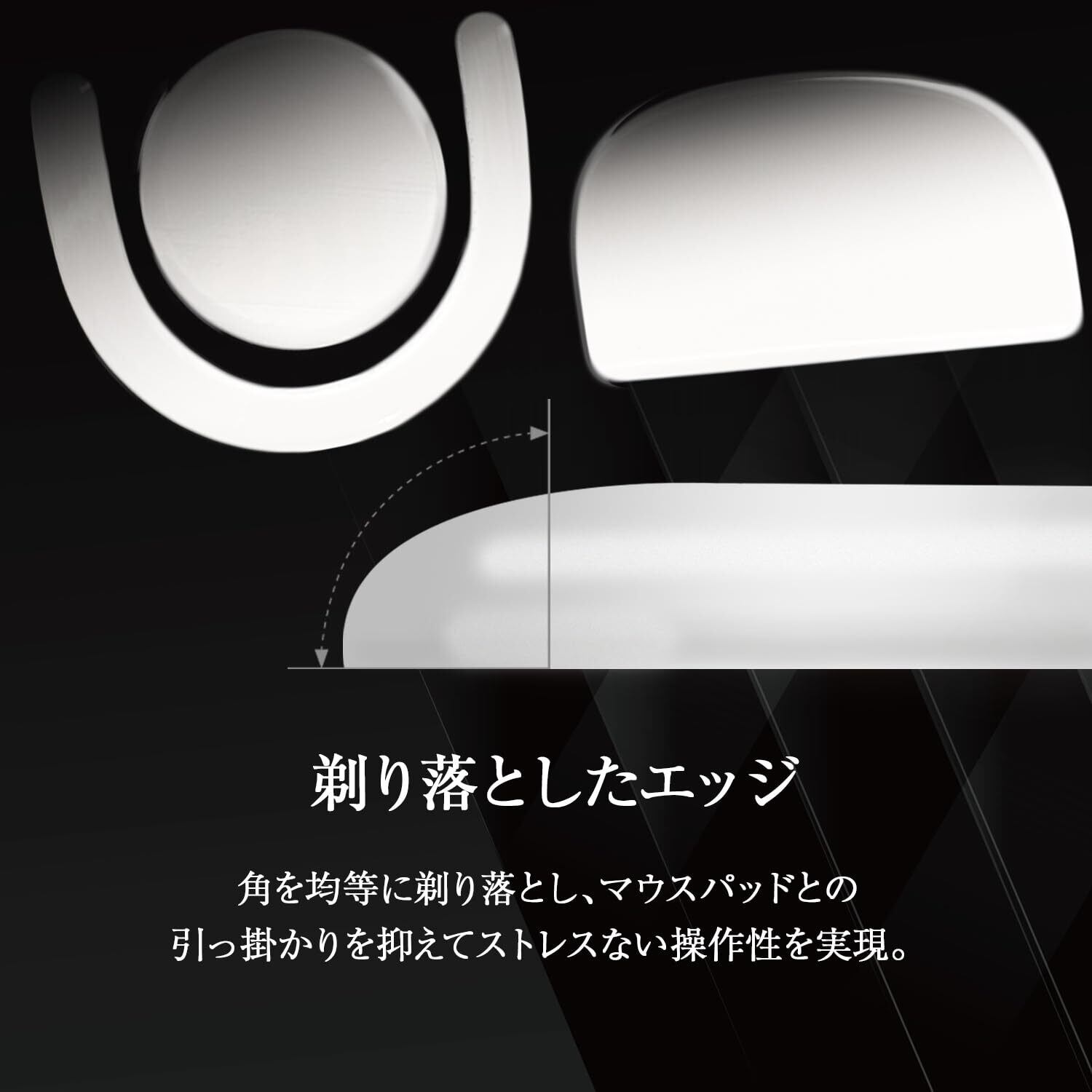 【削ぎ落としたエッジ】マウスパッドとの引っ掛かりを無くし、快適な操作性を実現。