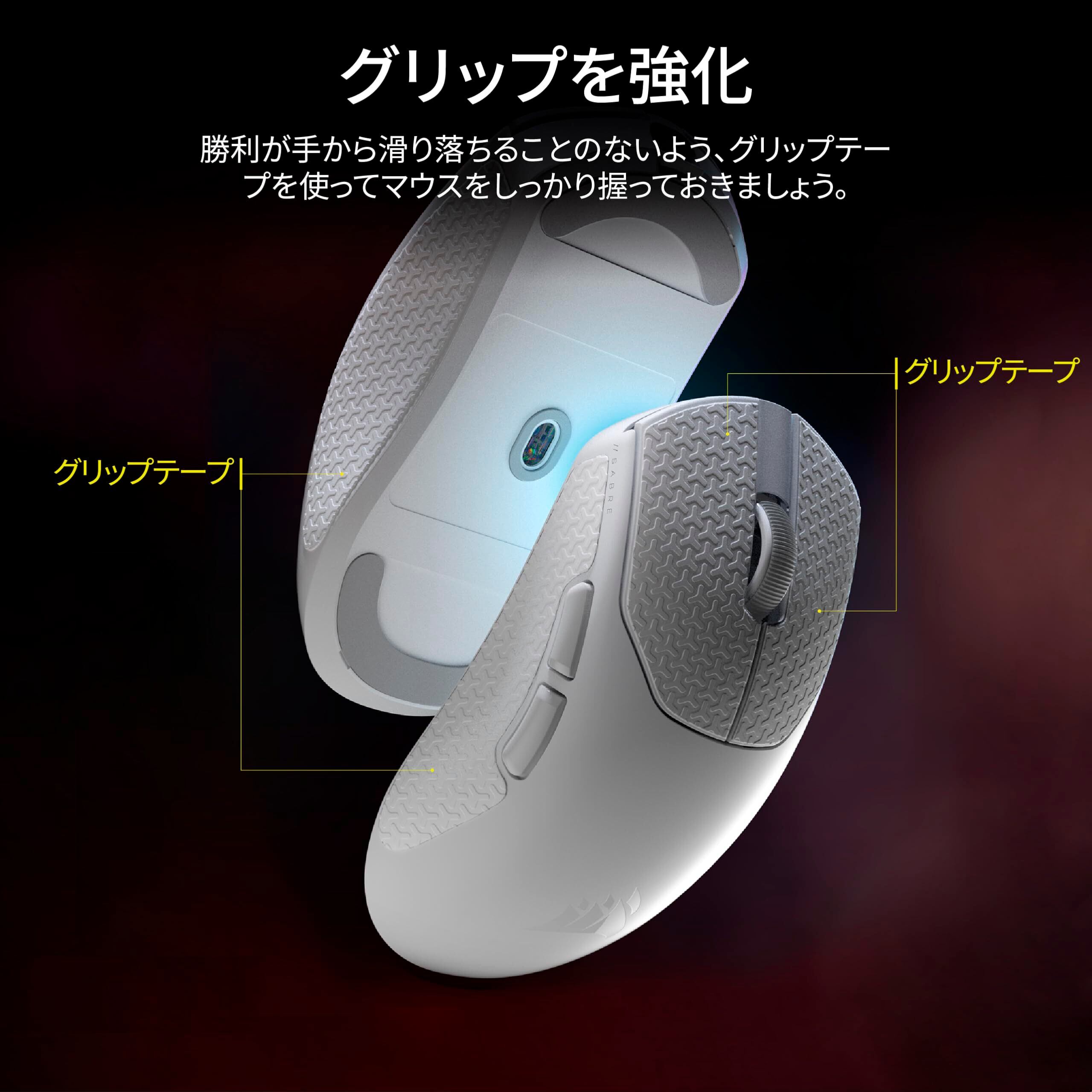 「CORSAIR SABRE v2 PRO」は、ハイパフォーマンスを追求した超軽量ワイヤレスゲーミングマウスです!たったの36gという驚異の軽さで、素早い動きと快適な操作を実現。最大33,000DPIの高精度センサーを搭載し、瞬時の反応でゲームプレイをサポートします。