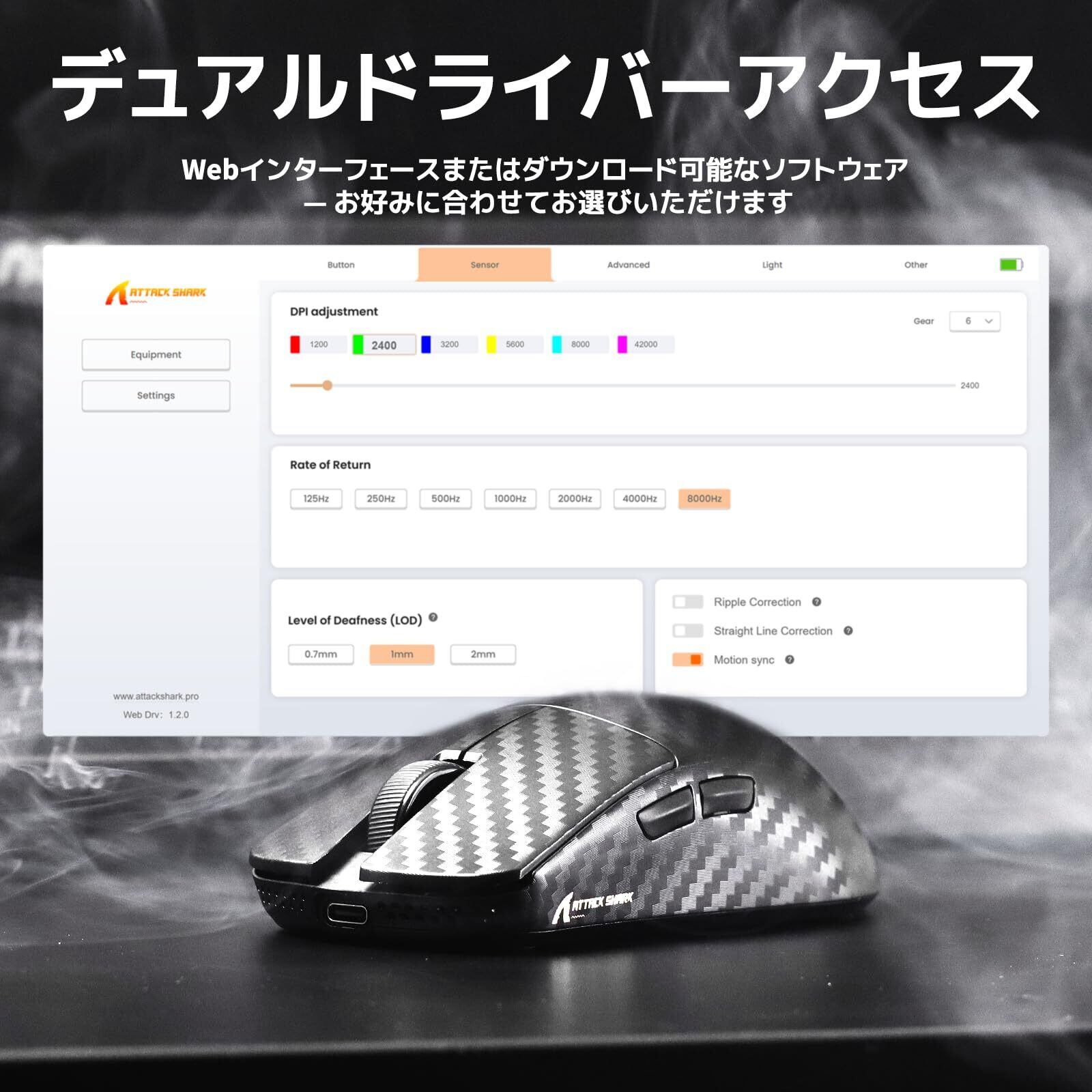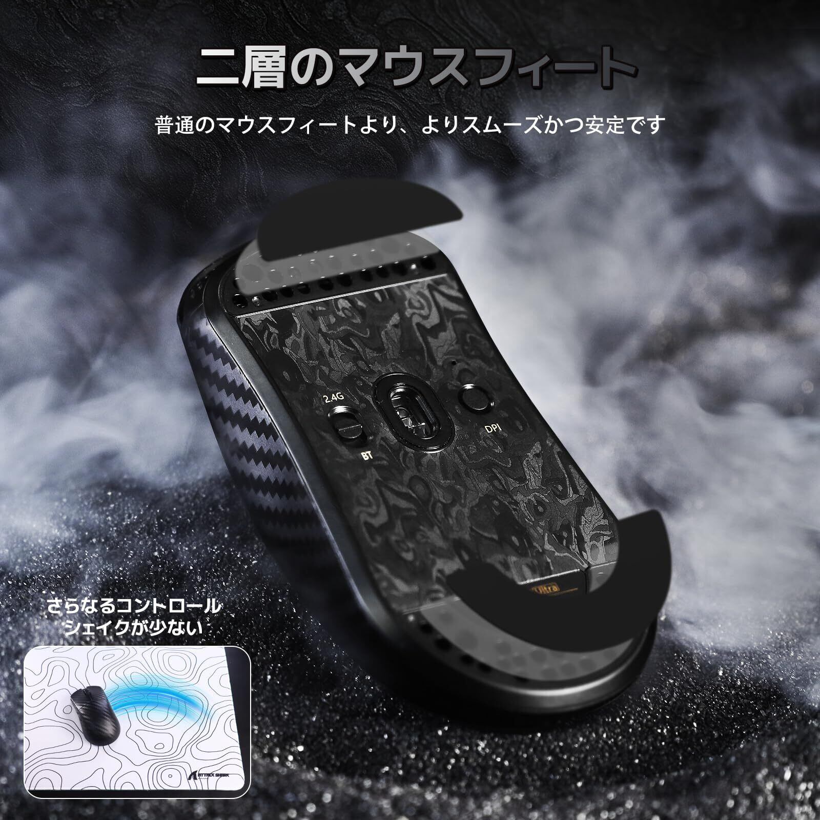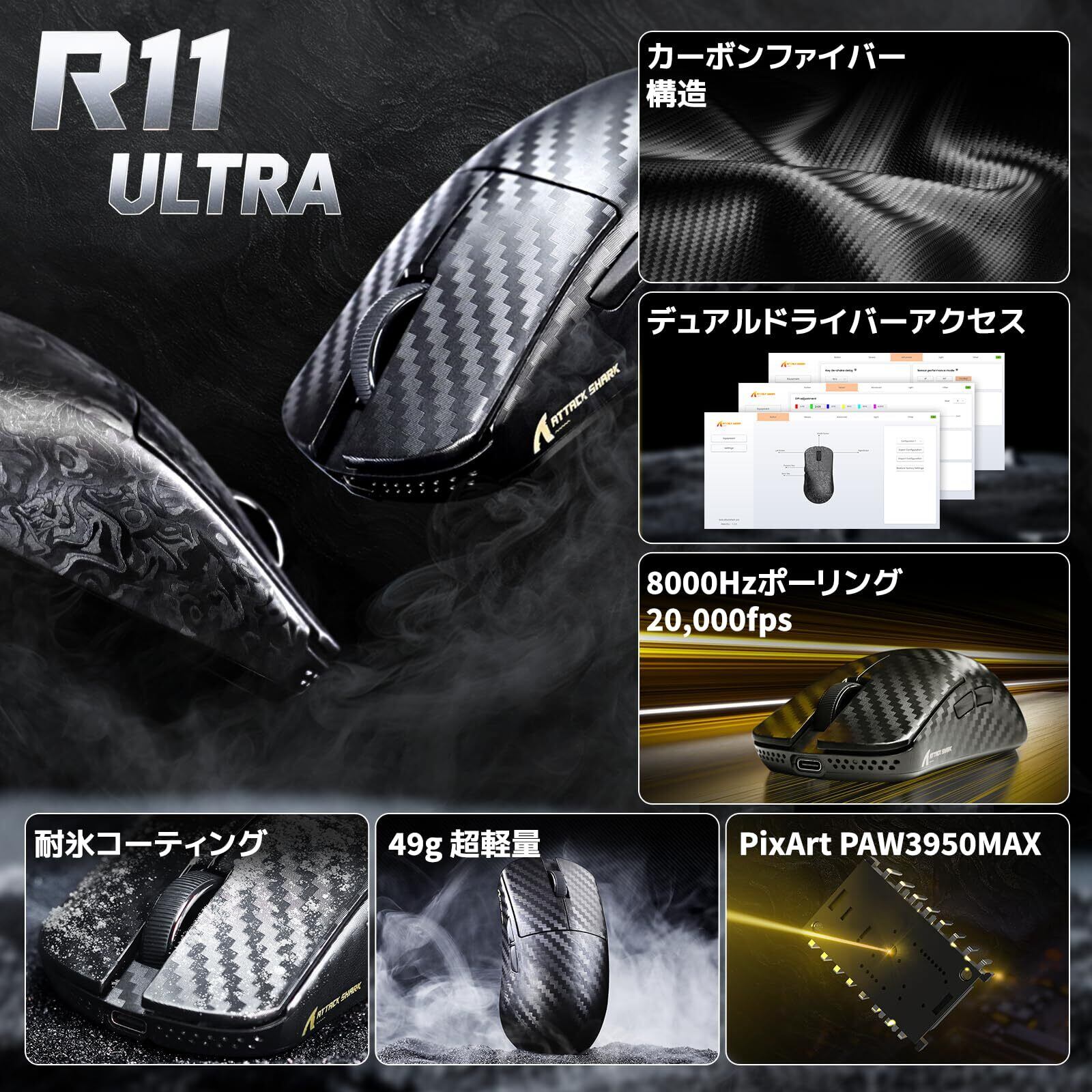ATTACK SHARK R11Ultra 影鮫 カーボンファイバーマウス ゲーミングマウス Wワイヤレス 超軽量49g PAW3950MAX Nordic52840 8000Hz 42000dpi 20KFPS 2.4G/Bluetooth/USB-C 充電式 コイルケーブル Webベースのソフトウェア PC/Windows/Mac 技適証明番号:219-259562