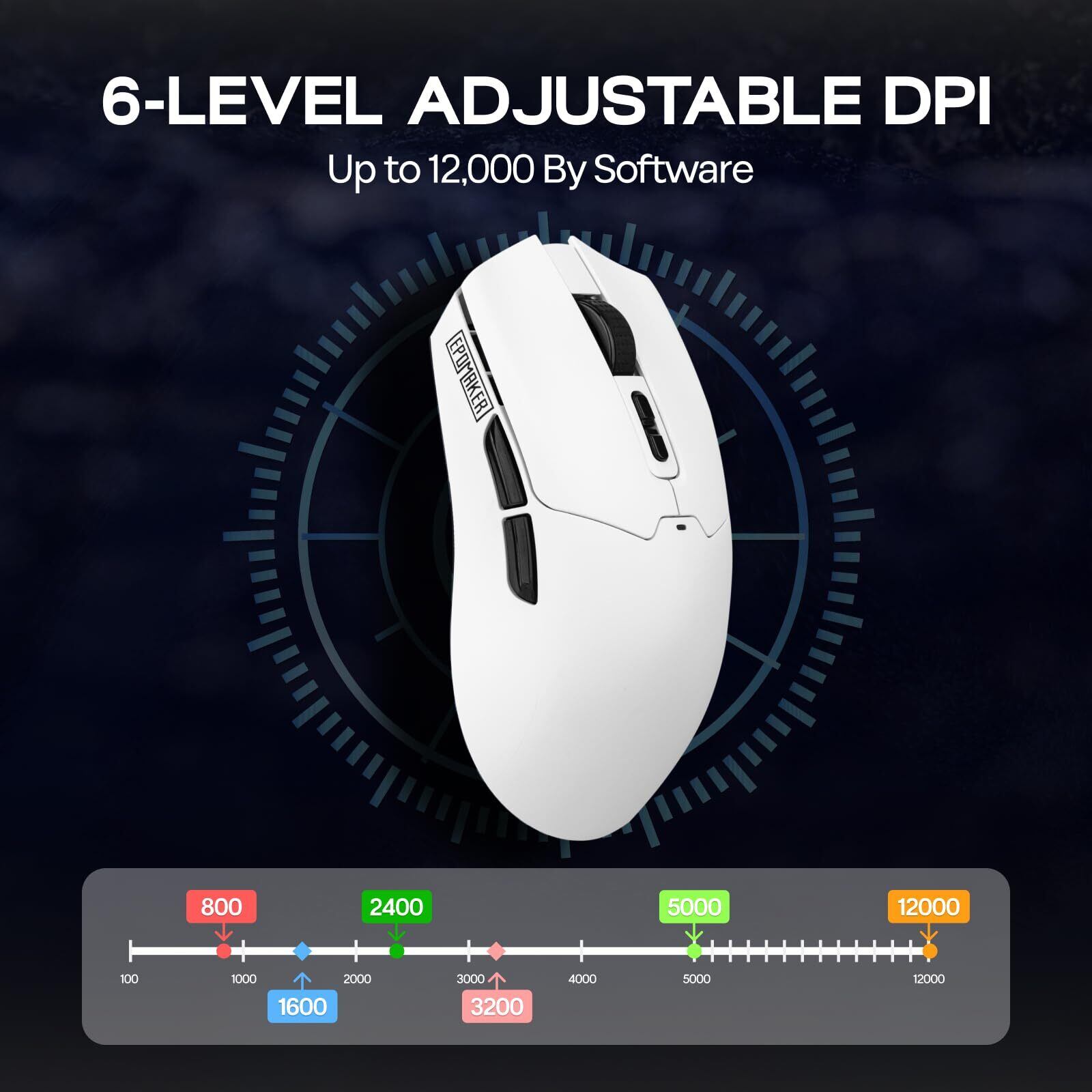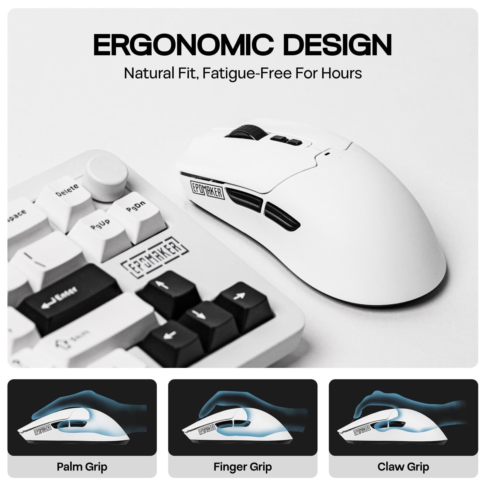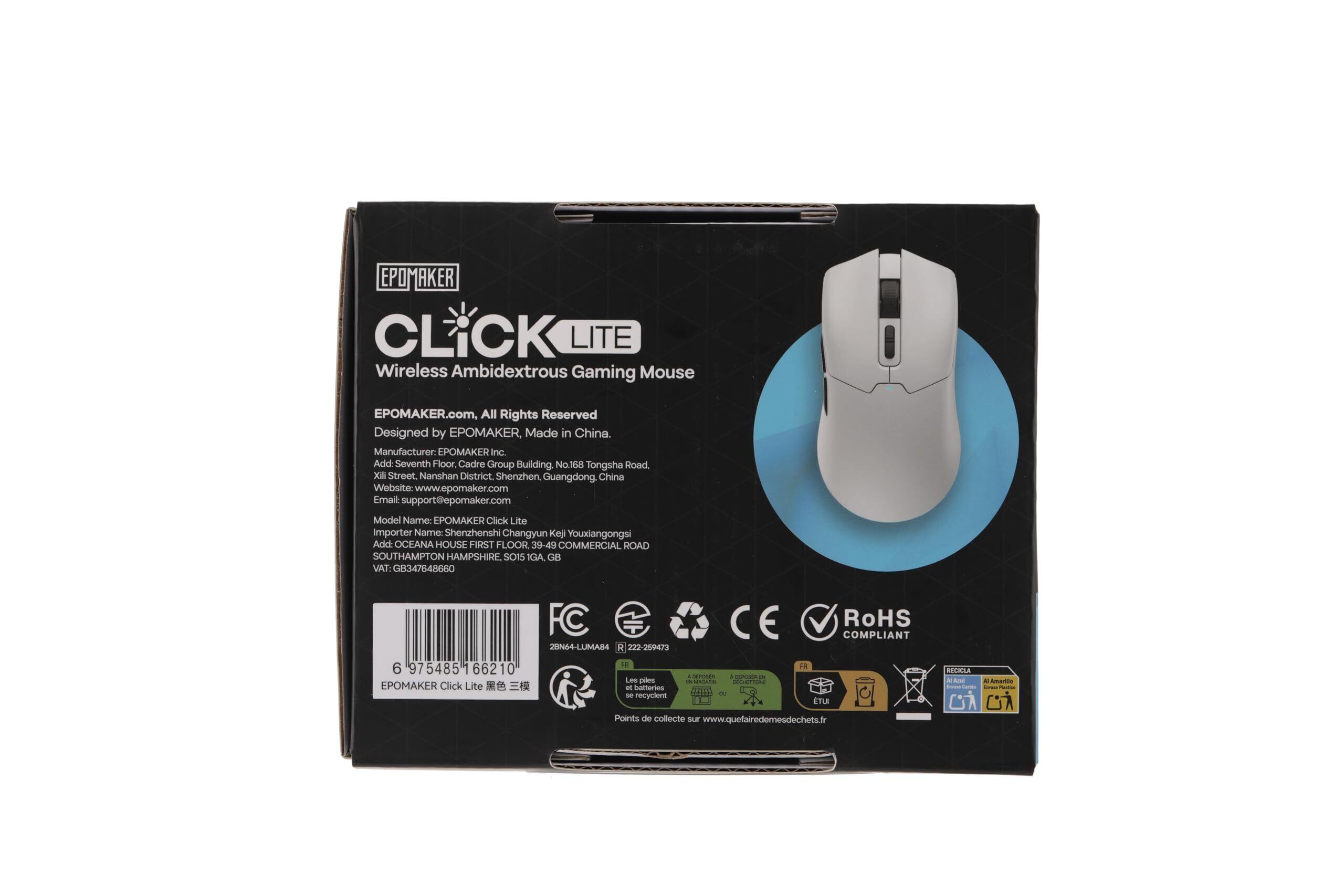 EPOMAKER Click Lite ワイヤレス ゲーミングマウス 800~12,000 DPI 調整可能 PAW3311センサー 超軽量59g 無線 500mAhバッテリー 2.4GHz/Bluetooth/USB-C 充電式ワイヤレスマウス PC Windows Mac Linux対応 5個プログラムボタン (White)
