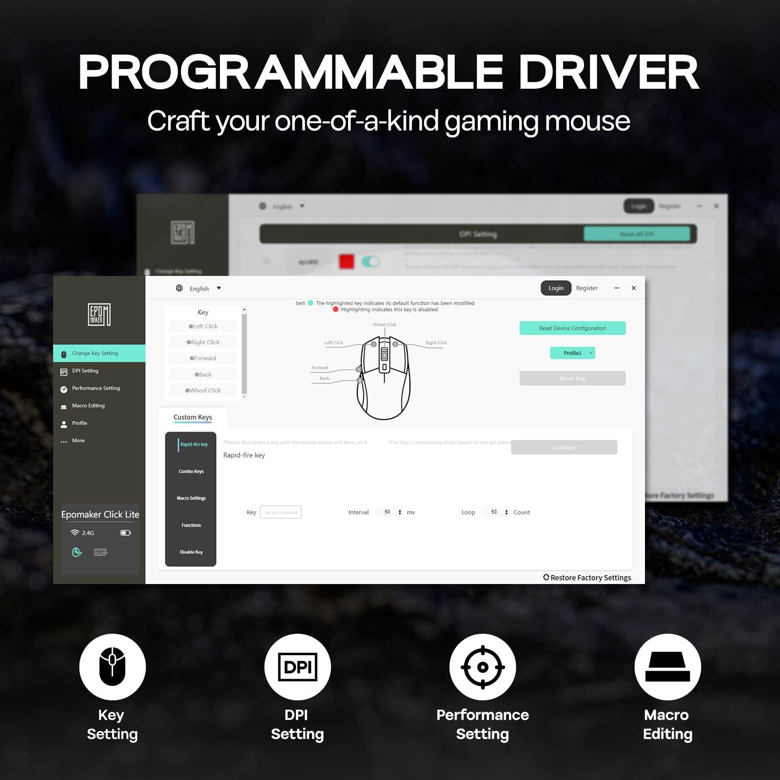 5個のプログラム可能なボタンを搭載しているため、自分だけの使いやすい操作にカスタマイズ可能です。ゲームプレイに合わせたショートカット設定ができ、戦略的にプレイする手助けをします。